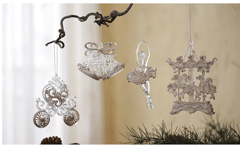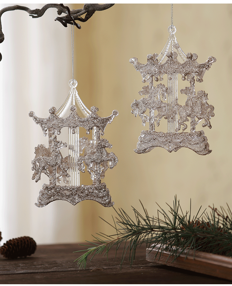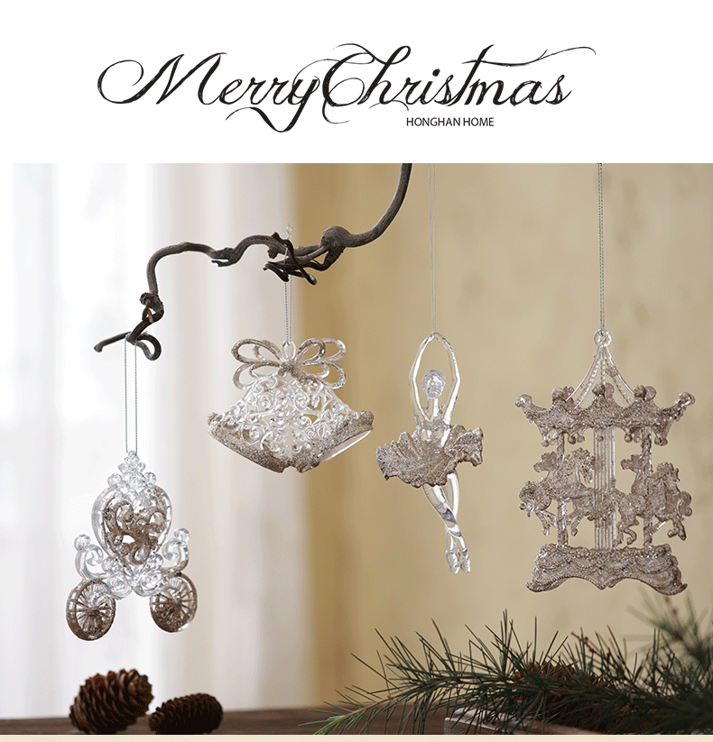 Buscando madera, árbol de Navidad transfronterizo, colgante de acrílico, campana, carruaje de calabaza, carrusel, colgante decorativo de bailarina