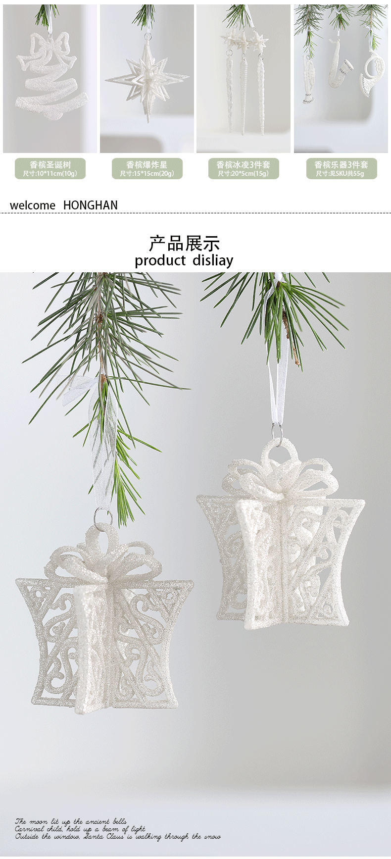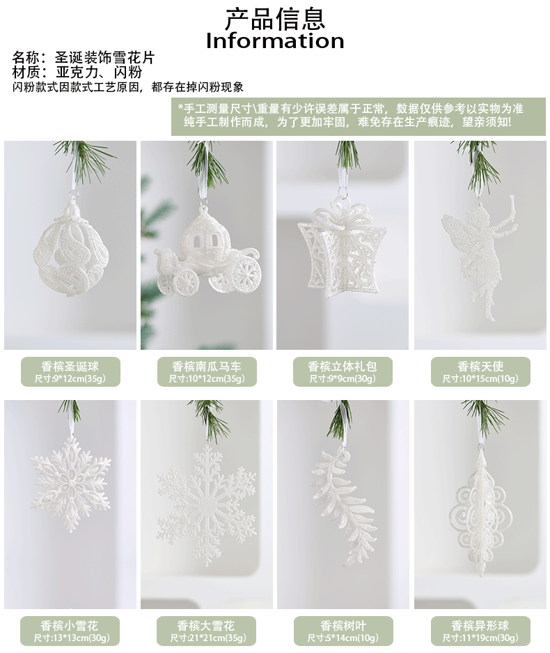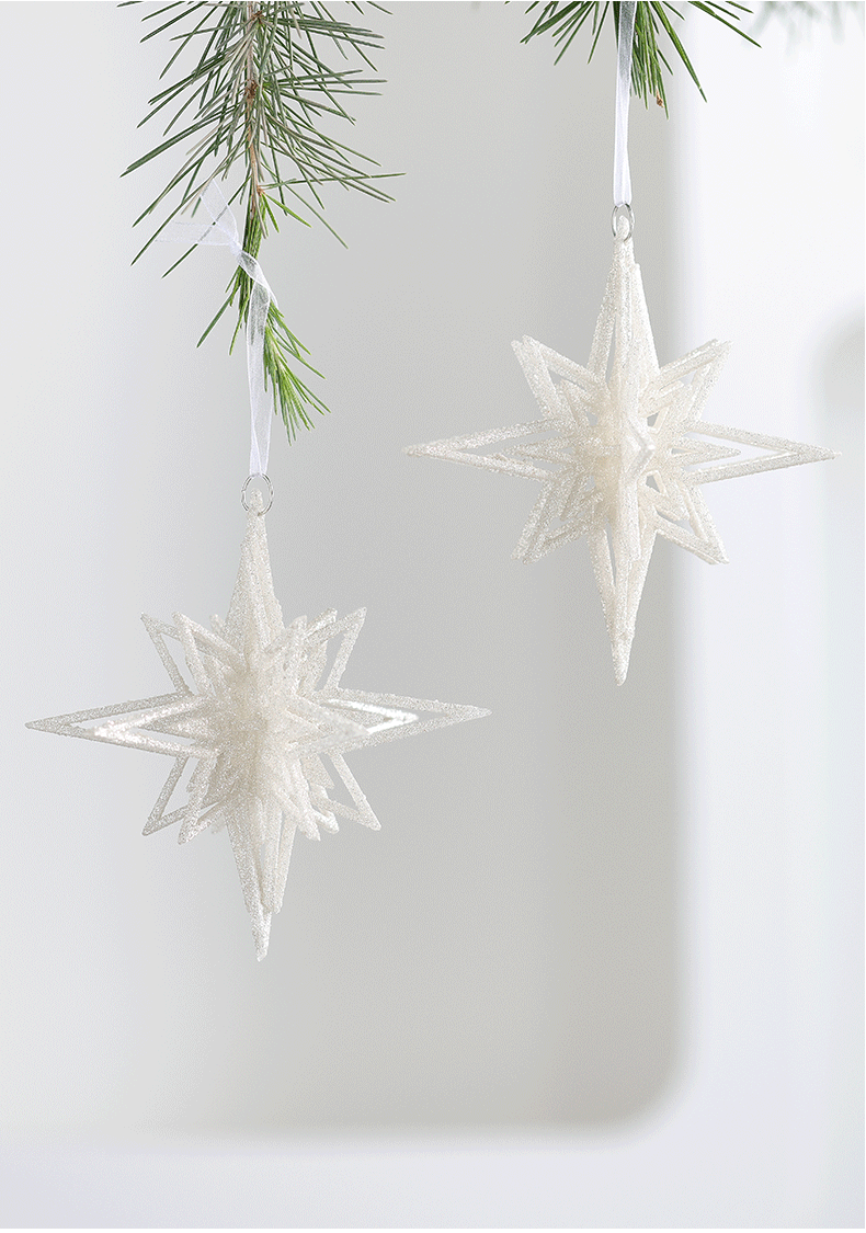 Colgante acrílico blanco polvo brillante colgante de Navidad pequeña estrella explosiva instrumento pequeño colgante de nieve decoración de Navidad