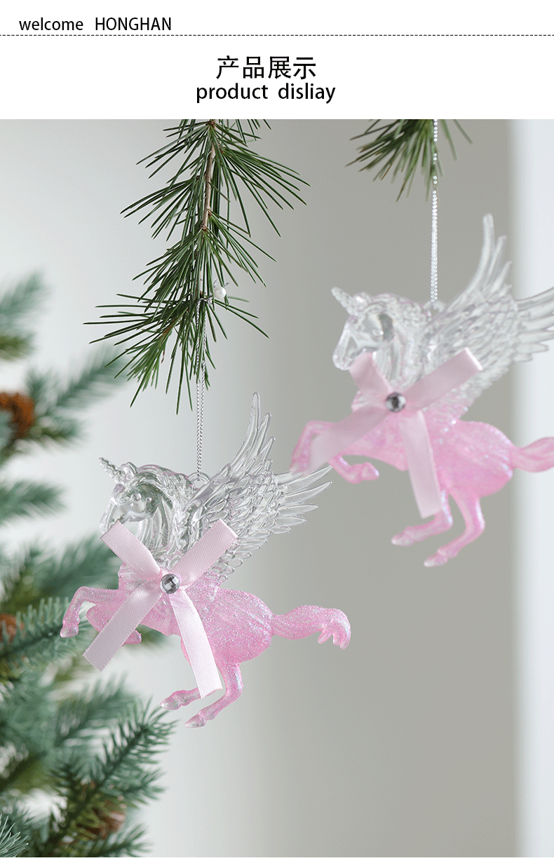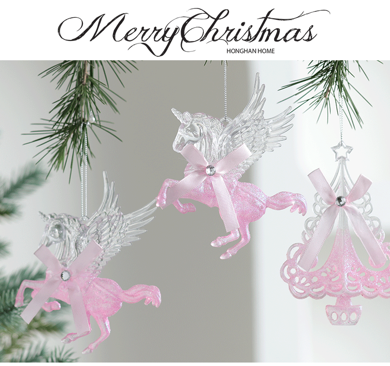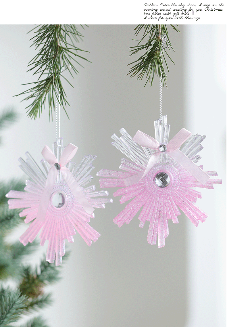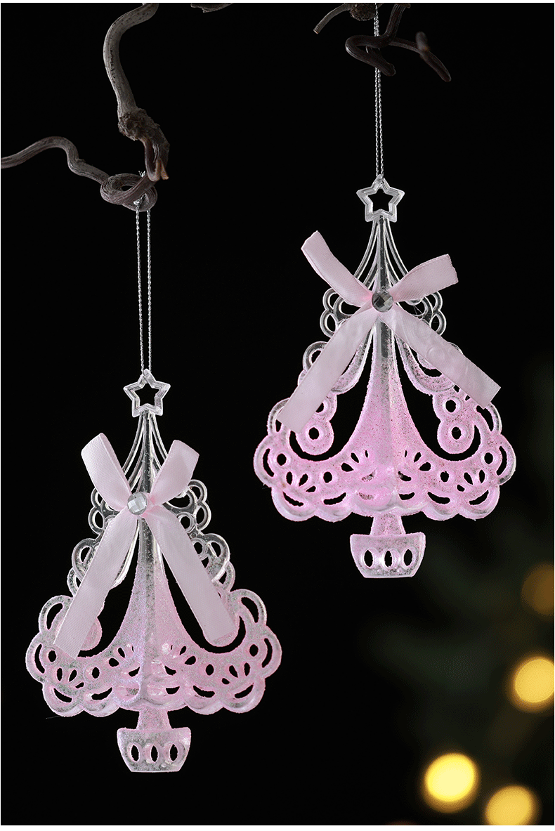 Buscando madera transfronteriza nuevo árbol de Navidad navideño polvo acrílico decoración decoración colgante transparente rosa
