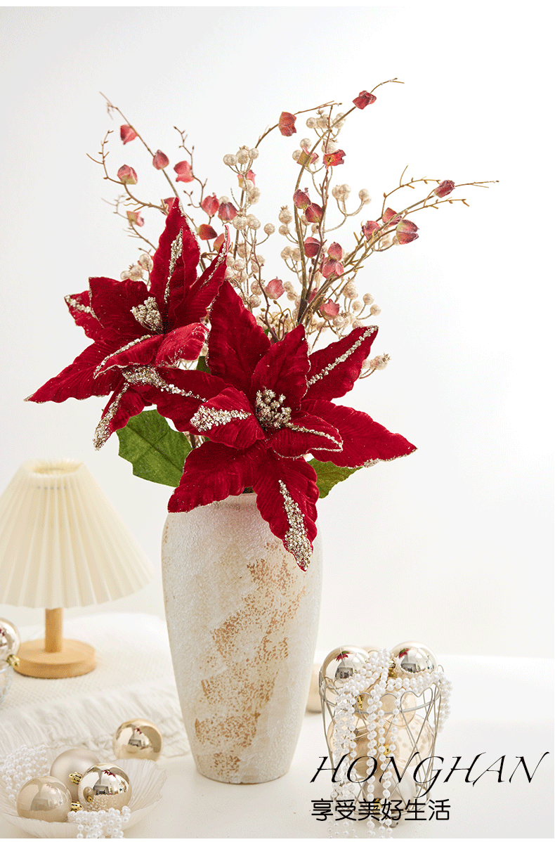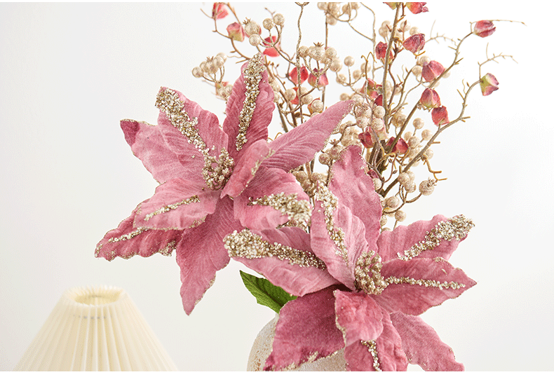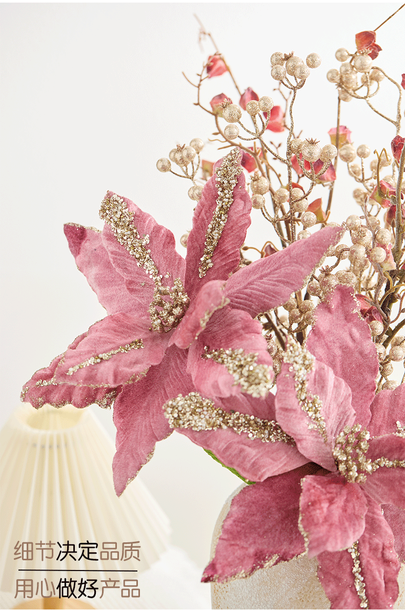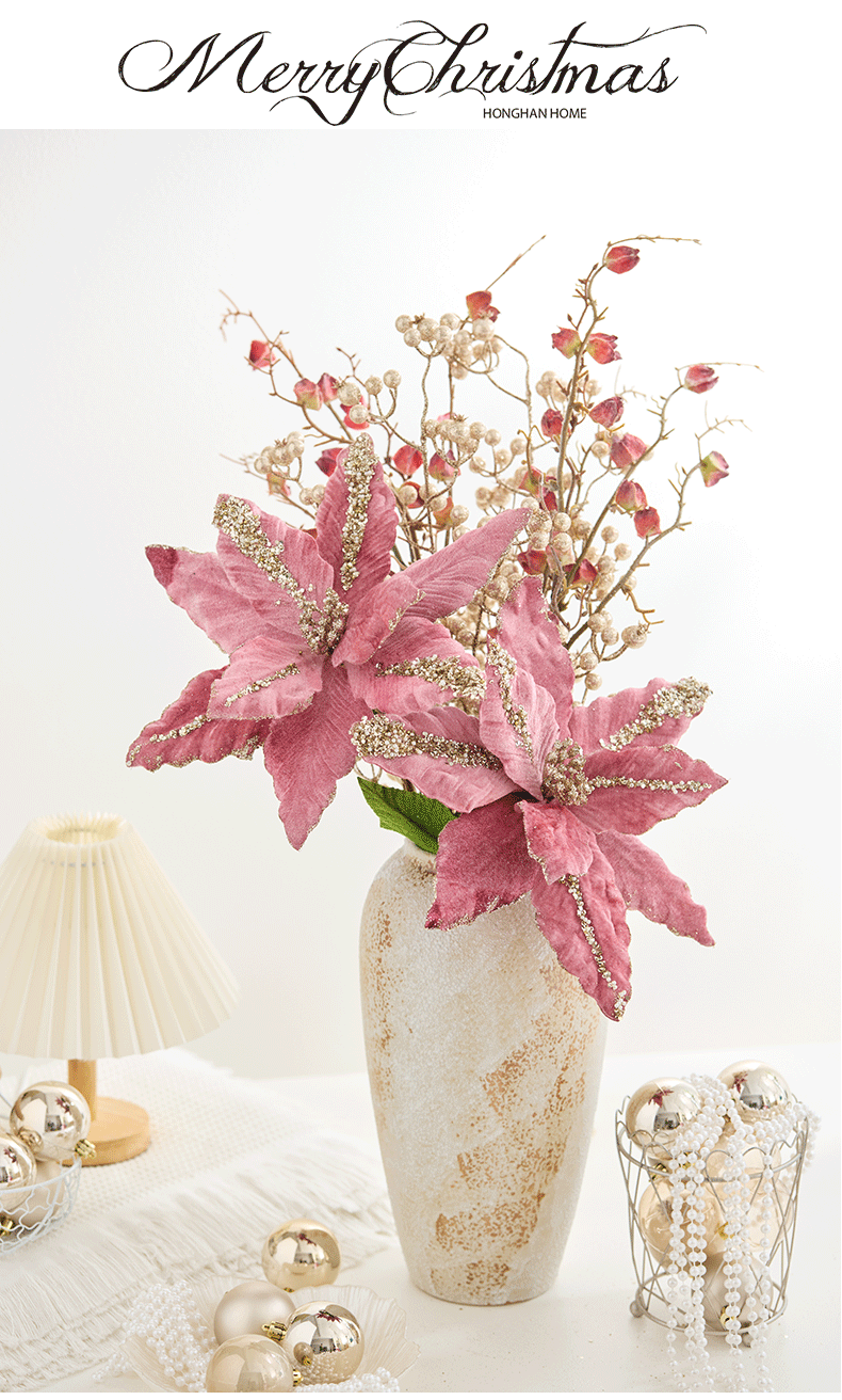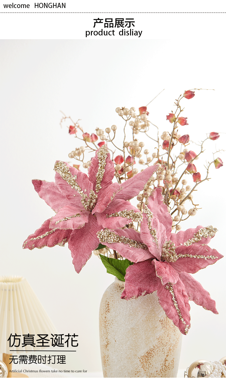 Nuevos productos transfronterizos de alta calidad, flores de Navidad rosa, decoraciones de Navidad, props de diseño de escenas de vacaciones