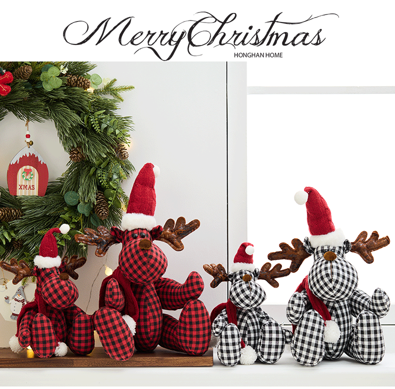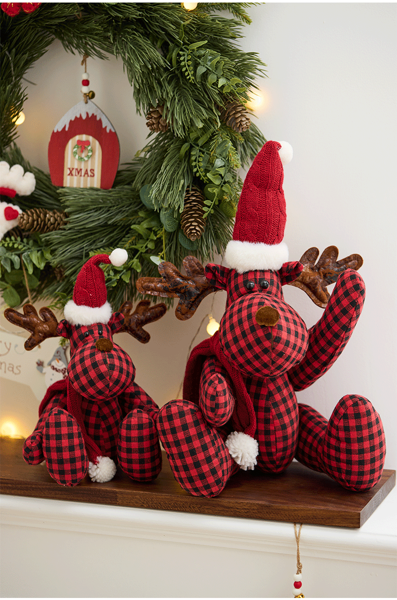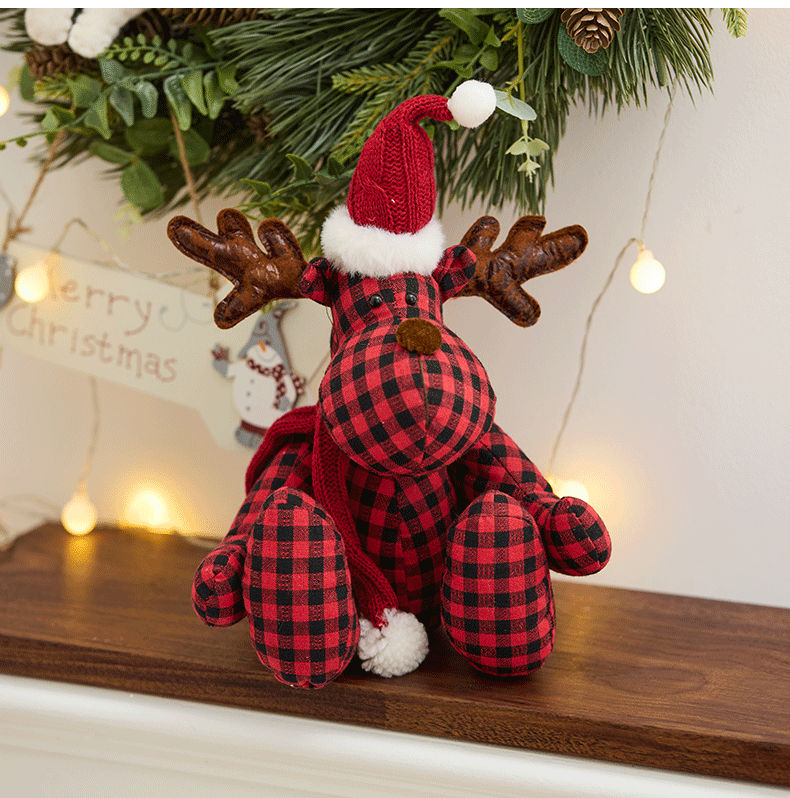 Buscando madera nuevo cuadrado rojo y negro de tela ciervo muñeca de decoración navideña regalos navideños accesorios de ventana