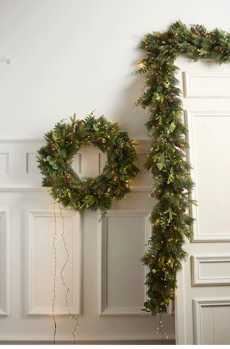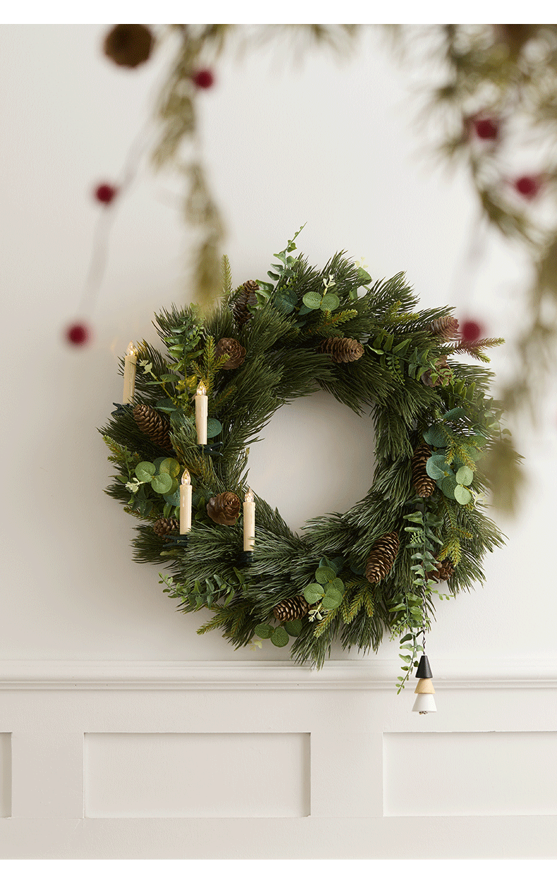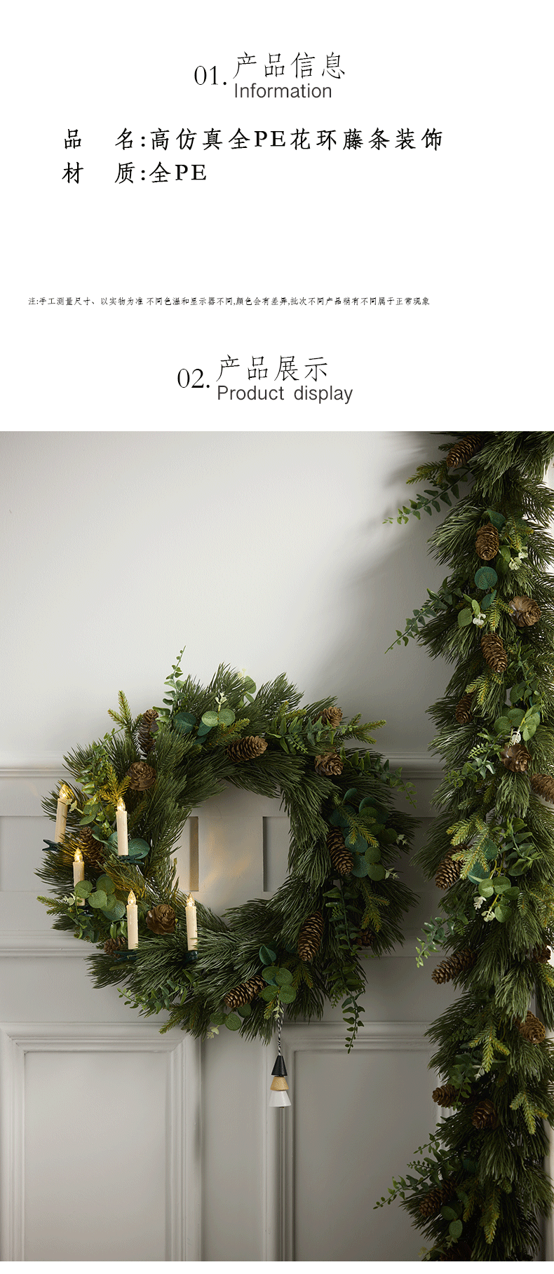 Nuevas decoraciones de Navidad transfronterizas de corona de flores de pe varilla puerta colgante de pared ventanas de diseño de props de disparo
