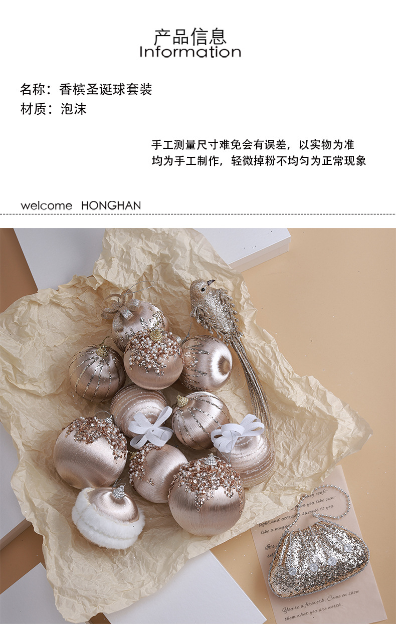 Nuevos productos transfronterizos de alta calidad textura de color champagne viento de Navidad decoraciones de Navidad colgante de árbol de Navidad colgante