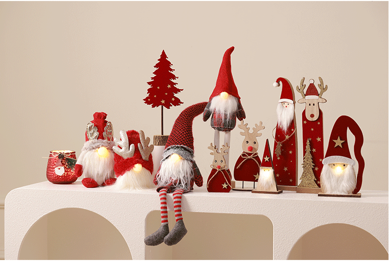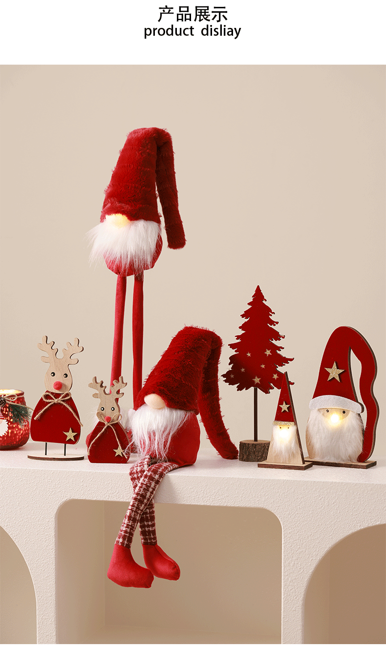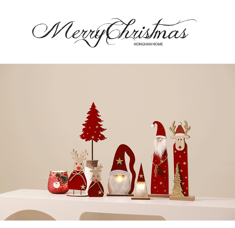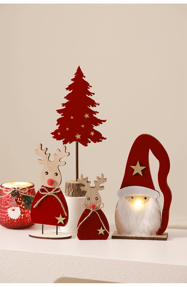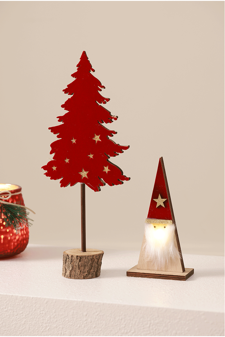 Árbol de Navidad luminoso Mesa de madera Decoración Accesorios decorativos Adornos rojos Anciano Elk Creative Mall Cafe