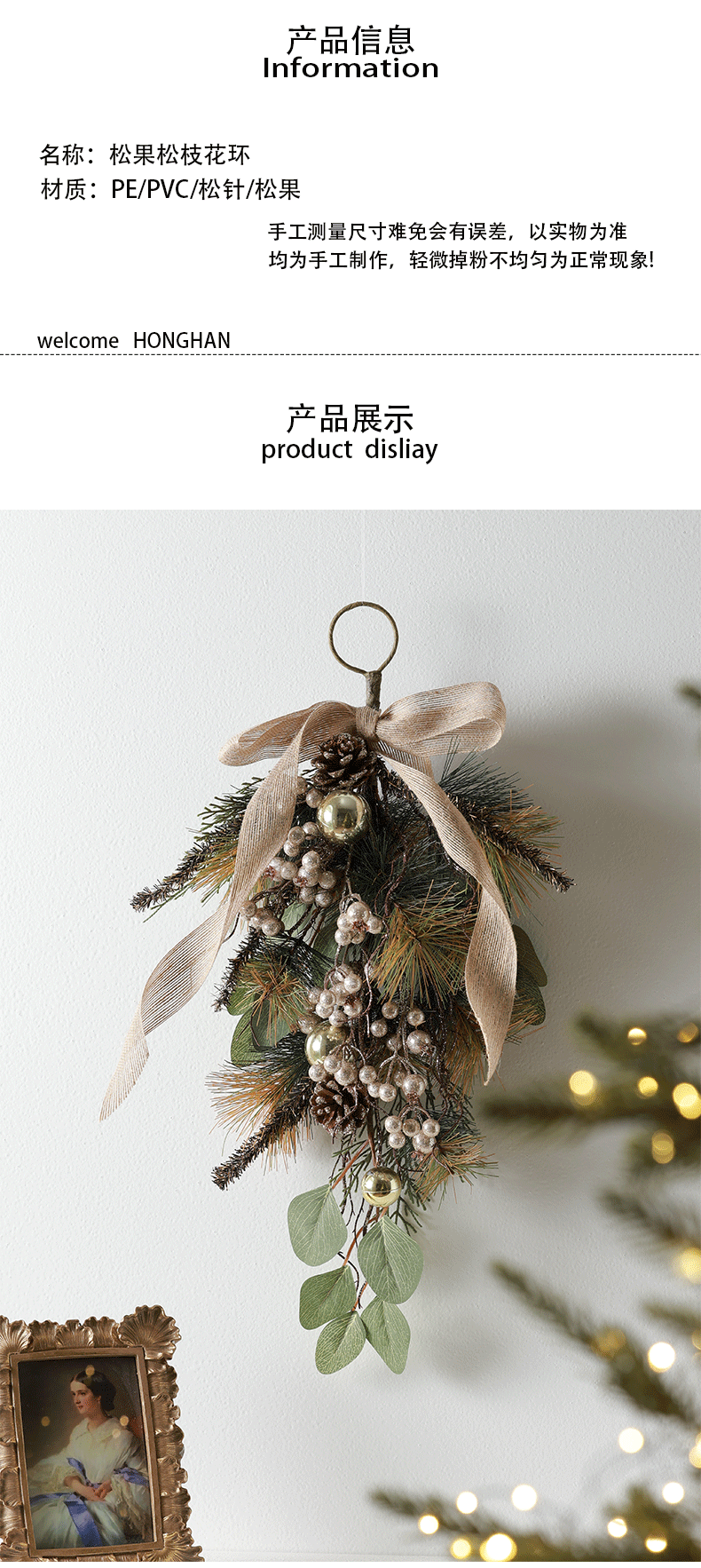 Decoraciones navideñas, accesorios de tiro, colgador de pared navideño, corona navideña nórdica, puerta, colgador de ratán, decoración de la escena de la ventana