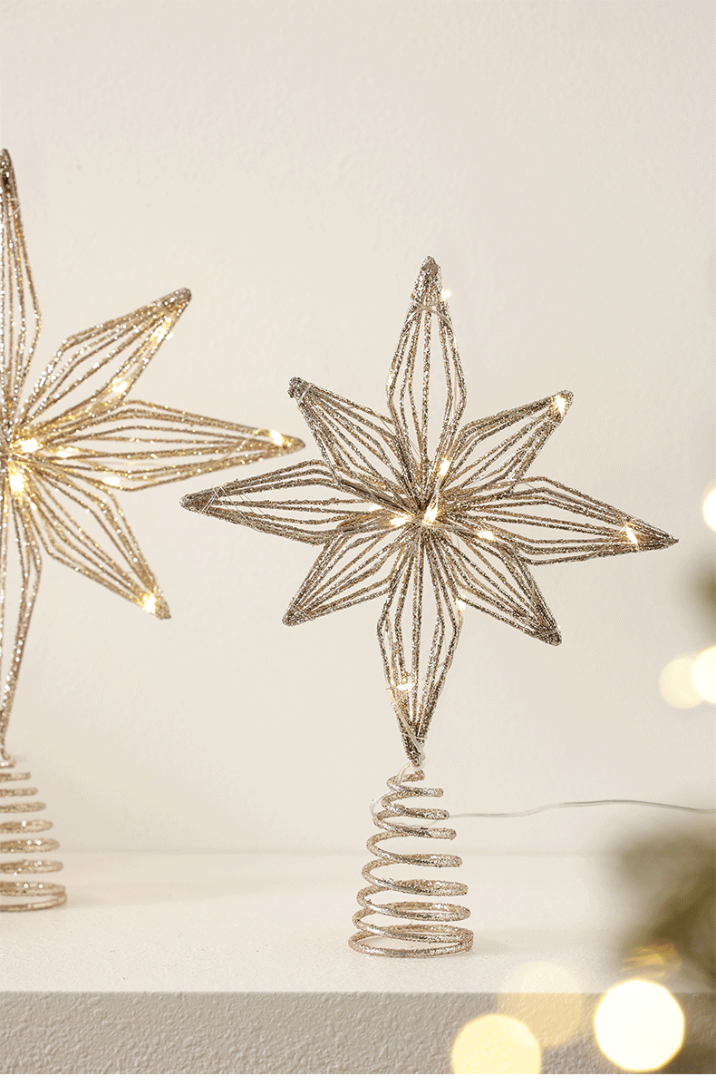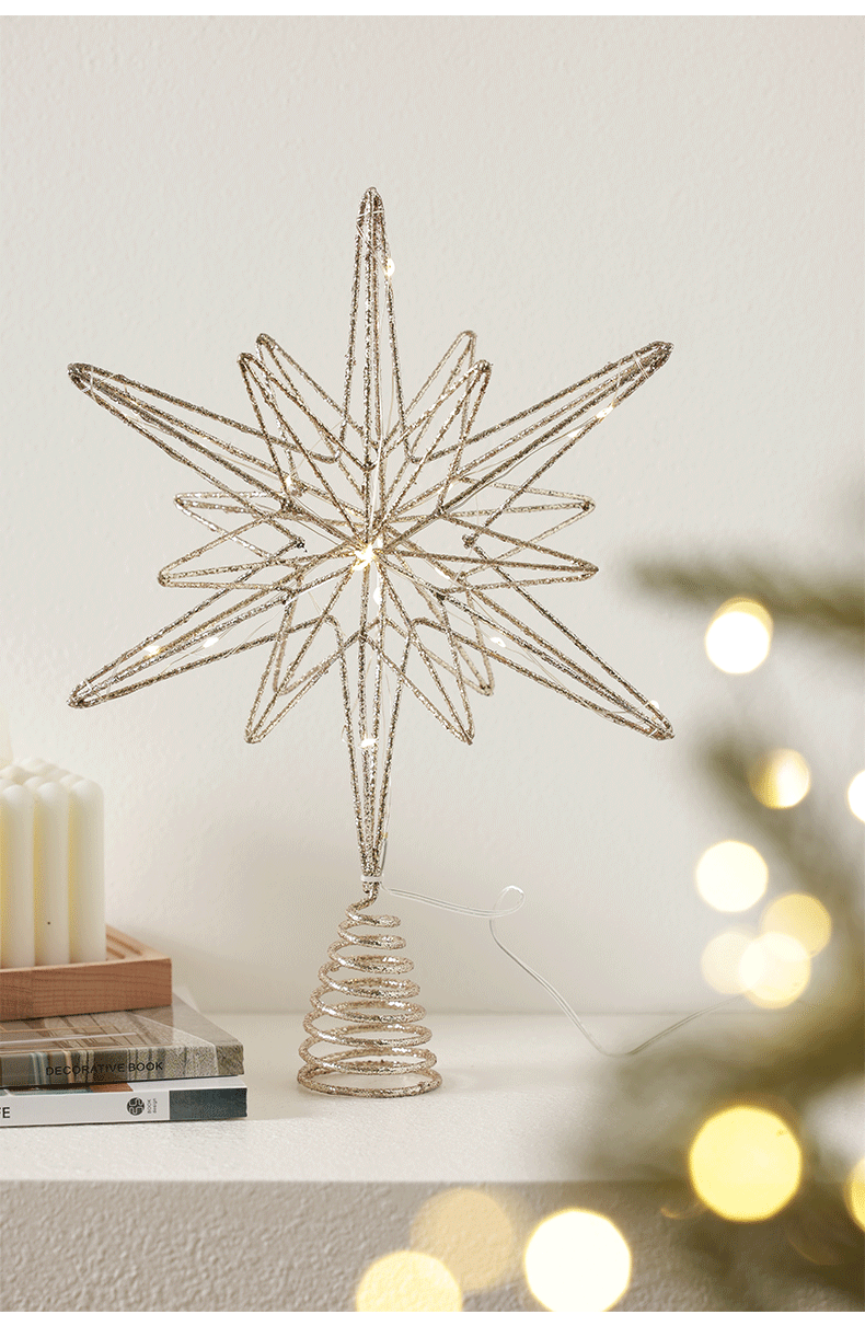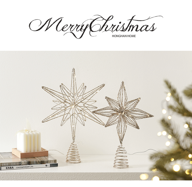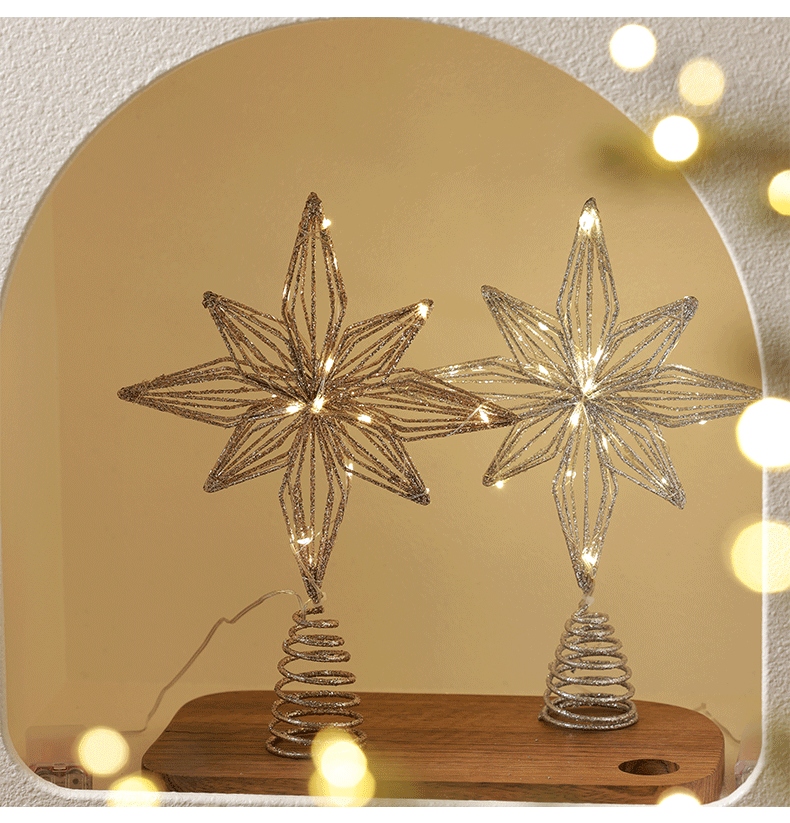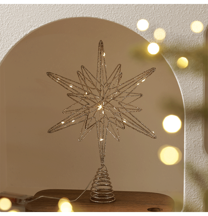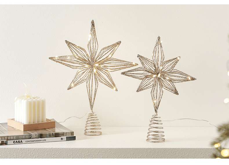Árbol de Navidad hierro forjado estrella decoración con lámpara brillante estrella de penta de color champán árbol de Navidad decoración colgante