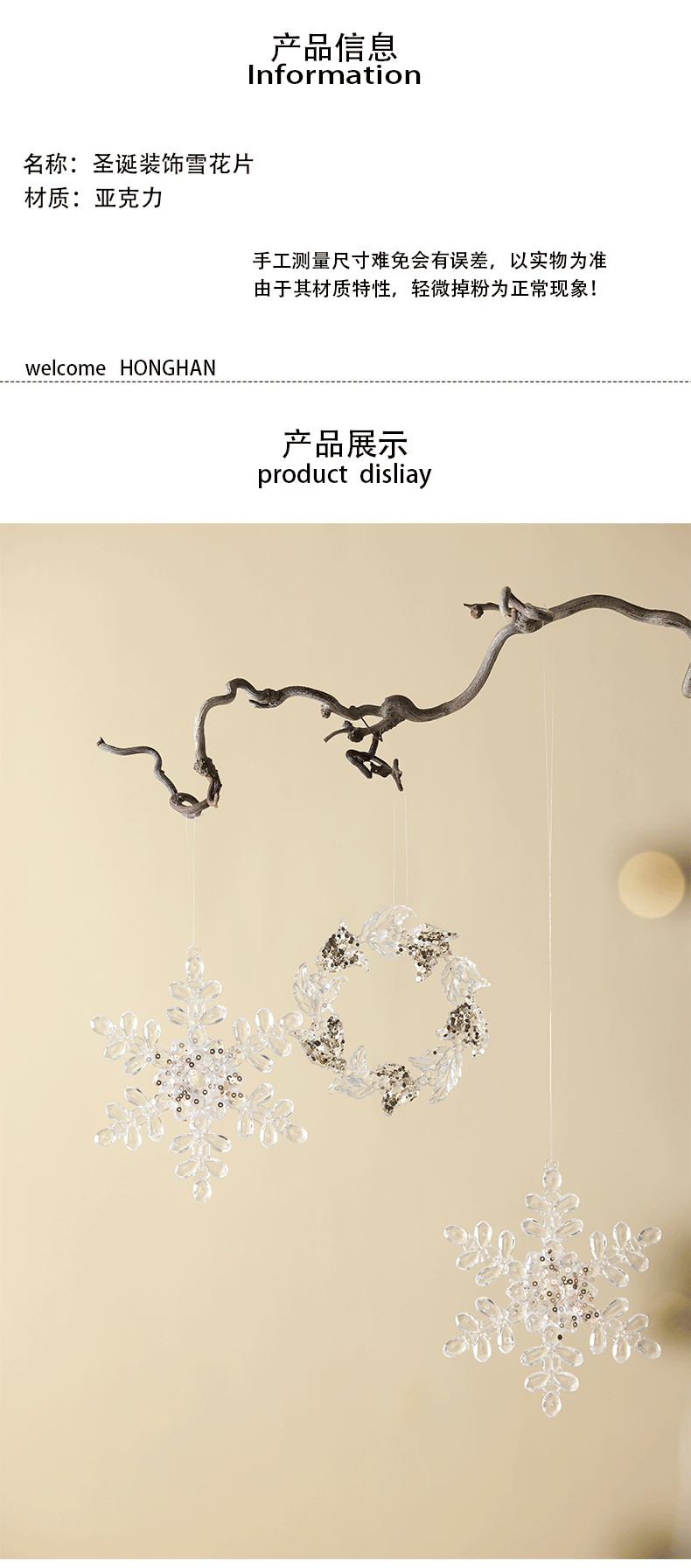 Decoraciones de árbol de Navidad ventana escenario de decoración accesorios colgante acrílico transparente flocos de nieve guirnaldas bolsas de regalo colgante