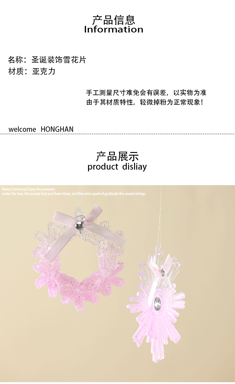 Nuevos adornos de árbol de Navidad transfronterizos colgante rosa transparente polvo acrílico colgante escena diseño props de disparo