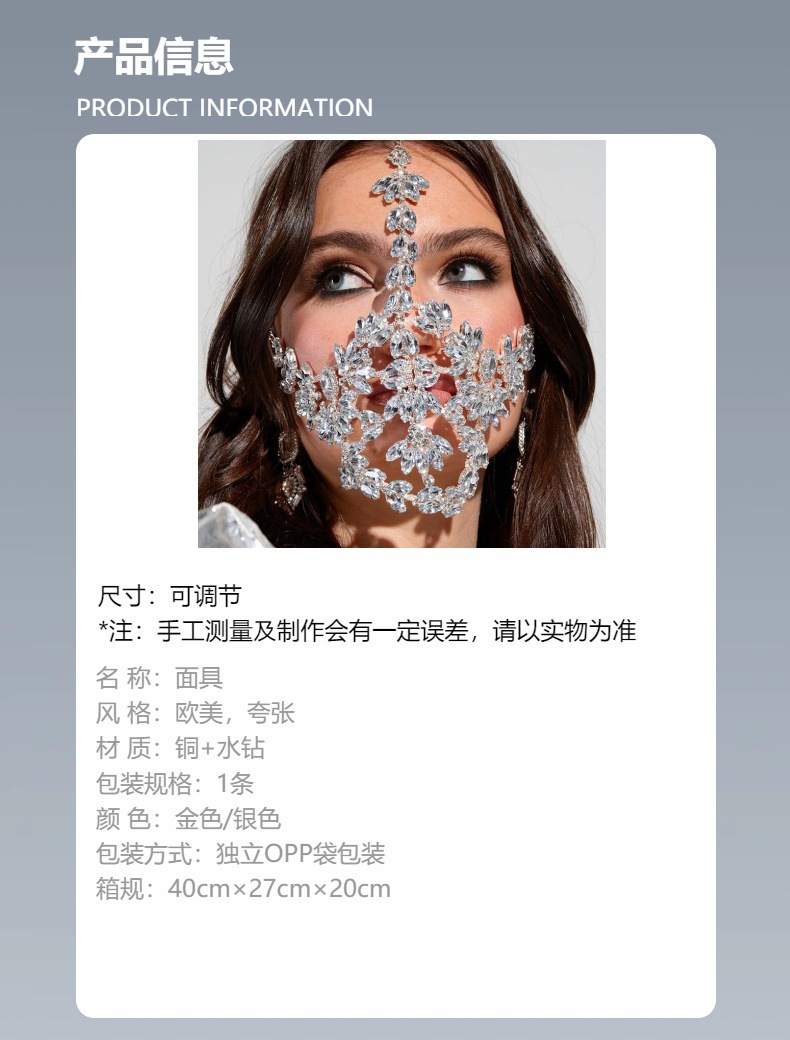 Joyería transfronteriza europea y americana exagerada máscara de diamantes de imitación Halloween mascarada fiesta máscara de diamantes