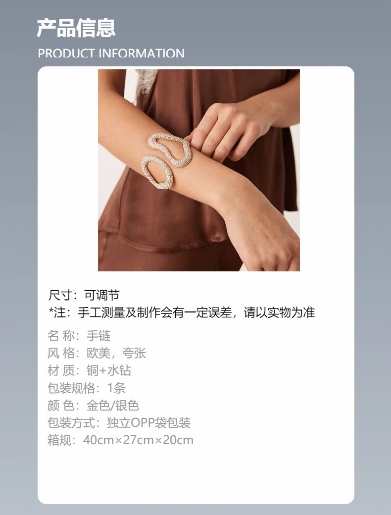 Nuevo brazalete de amor transfronterizo exagerado con un diseño de brazalete abierto de diamantes sensación de brazalete de joyas de calle