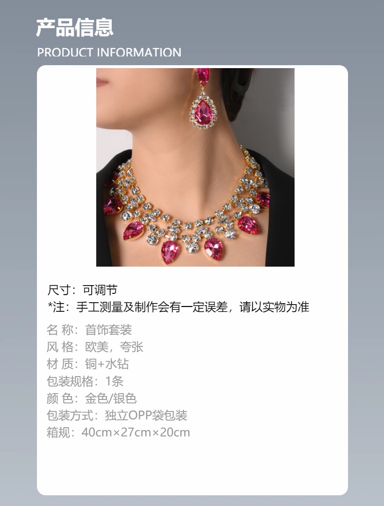 Juego de joyas de gotas de agua de AliExpress, cadena de clavícula de diamantes de imitación exagerada, pendientes simples, accesorios de diamantes completos, Jewelry Set
