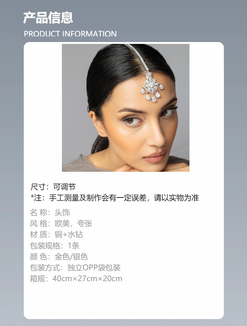 Nuevo exótico Feng Shui goteo cadena de frente retro novia diamantes cejas colgantes accesorios de tendencia de rendimiento cadena de pelo