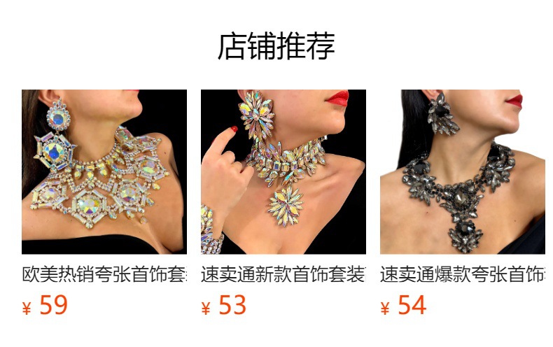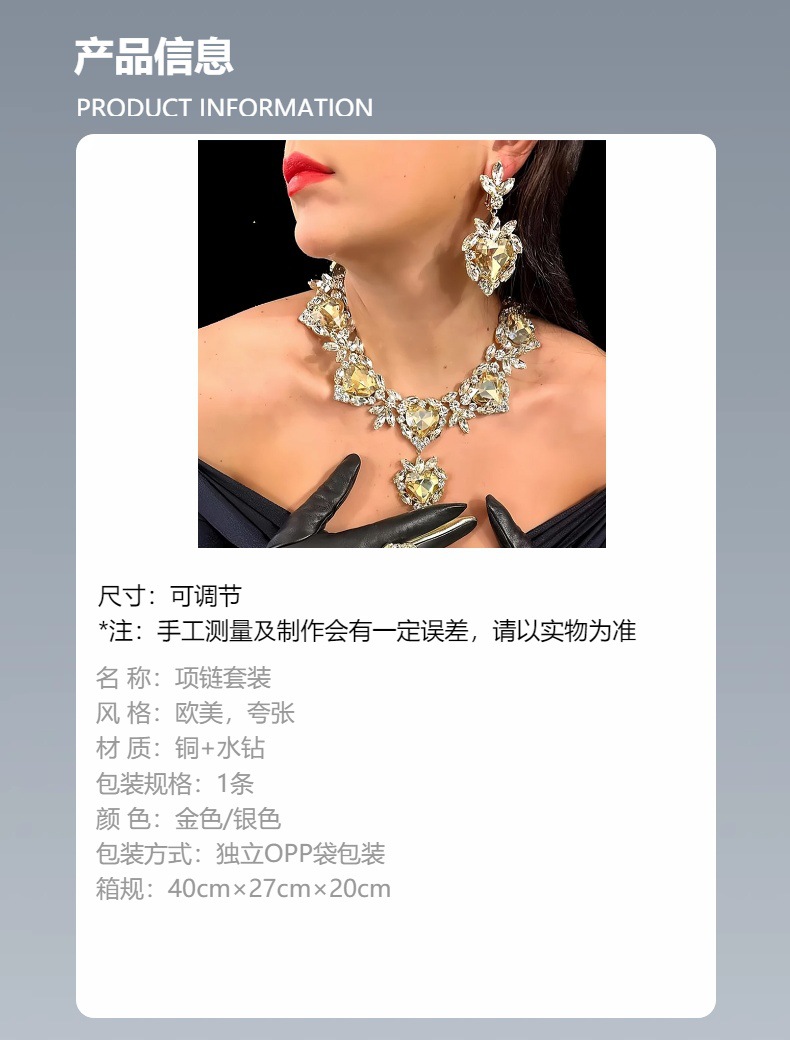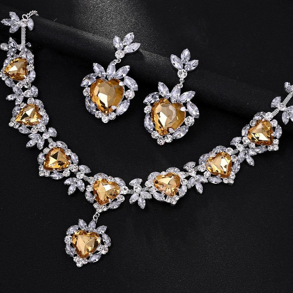 Europa y América amor conjunto de joyería de moda femenina alta sensación de diamante clavícula pendientes simples conjunto de joyería