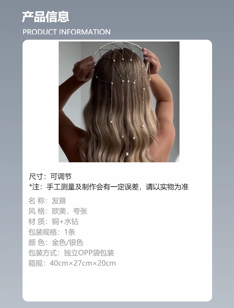 Europa y los Estados Unidos de la nueva red de bordillos de perlas temperamento cadena de cabello banquete accesorios de combinación banda de cabeza femenina