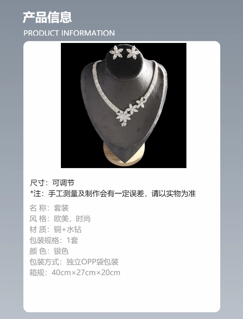 Europa y los Estados Unidos lujo ligero conjunto de pendientes de collar de diamante de alto nivel conjunto de collar de fiesta conjunto de joyería