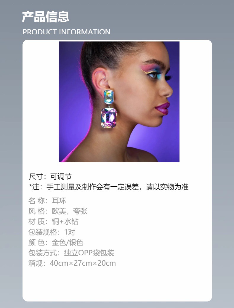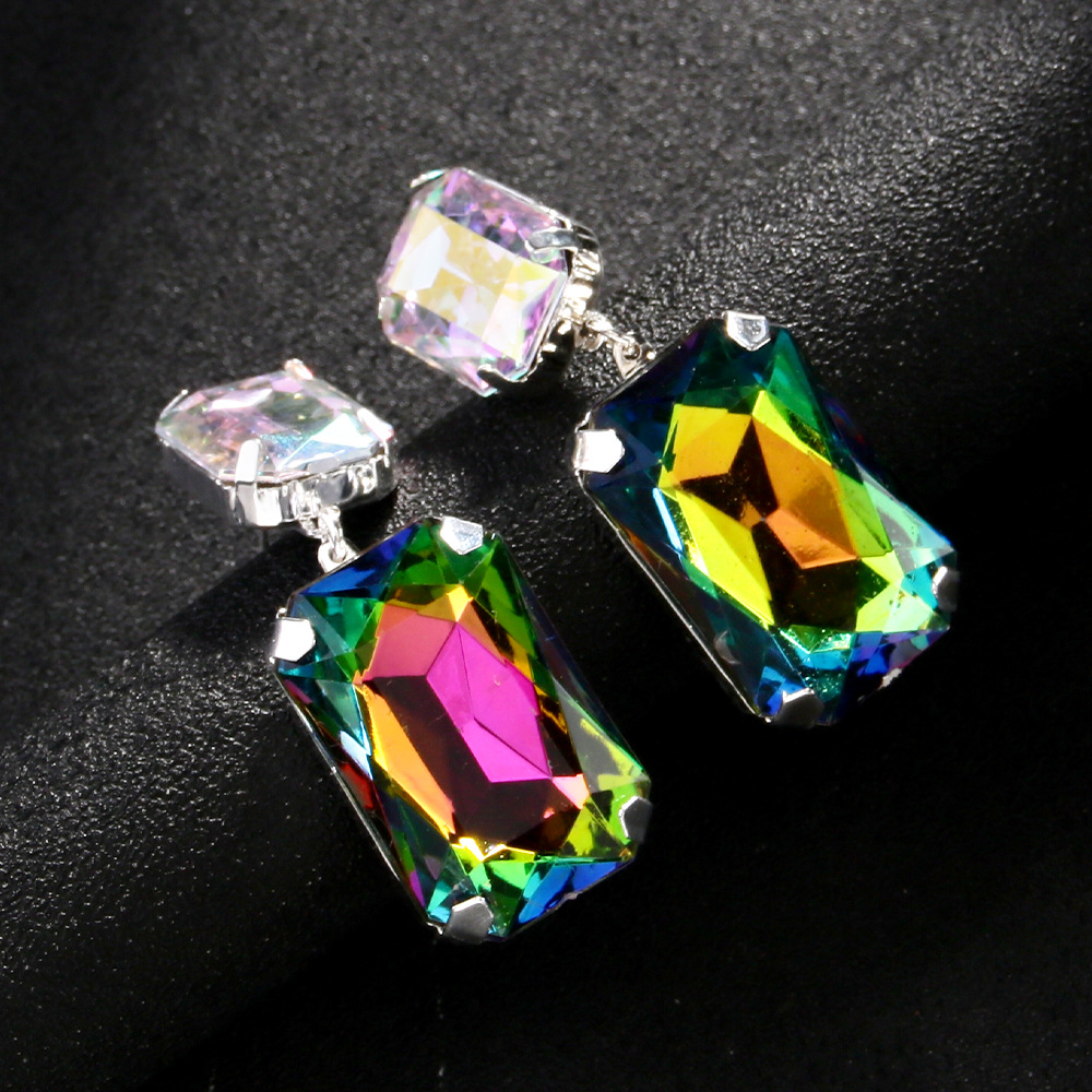 Europa y los Estados Unidos venta caliente aretes geométricos exagerados de alta calidad cuadrados pendientes de diamante de color moda aretes de viaje