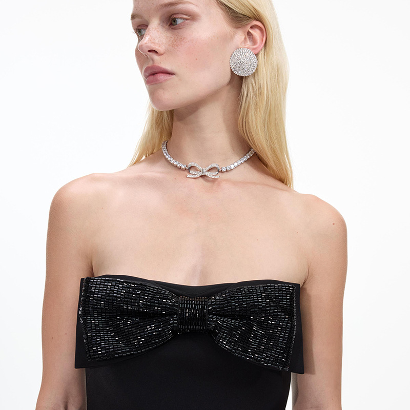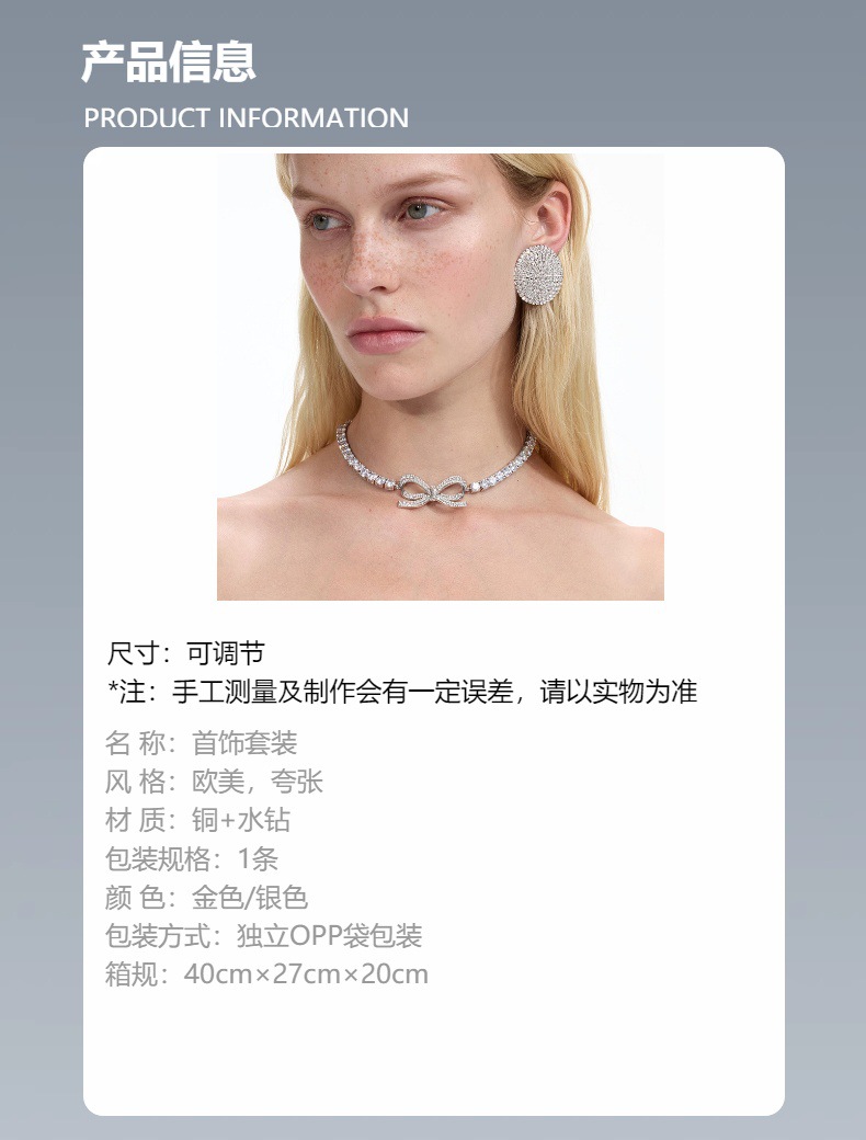 Nuevo conjunto de joyería de arco transfronterizo, collar de diamante, pernos redondos, accesorios simples, conjunto de joyería femenina