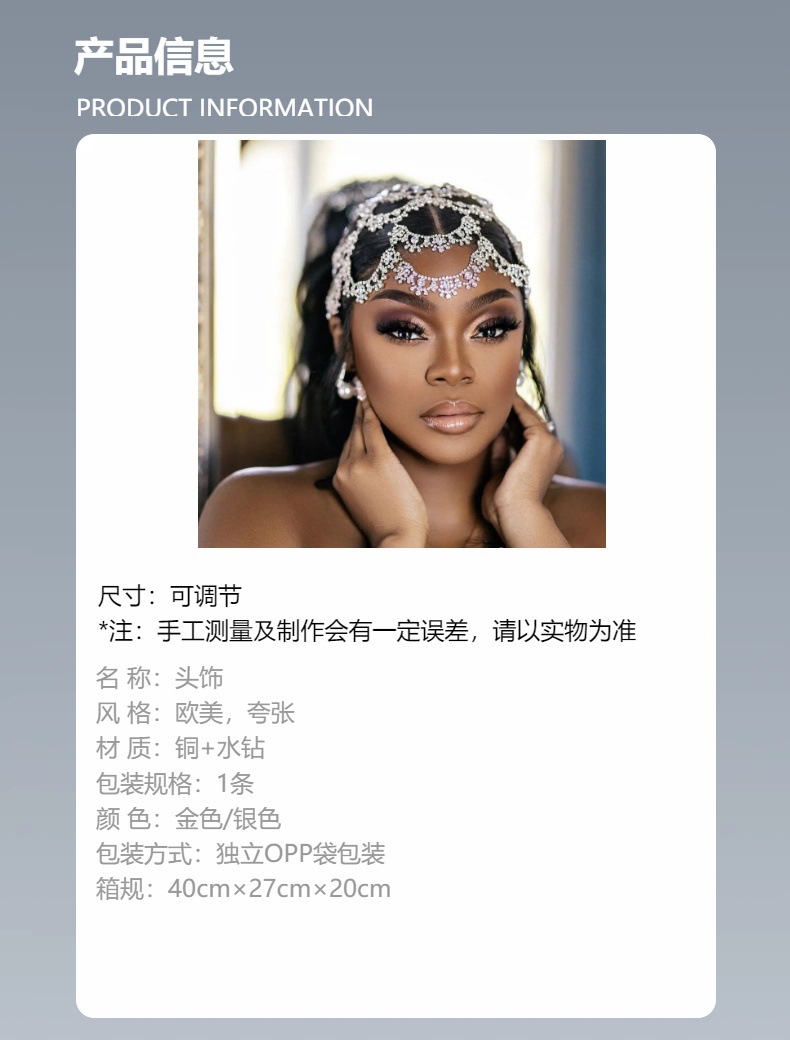 Ventas transfronterizas de estilo nacional en forma de flor, exagerado diamante joyería de cabello de boda para mujeres, cadena de cabello