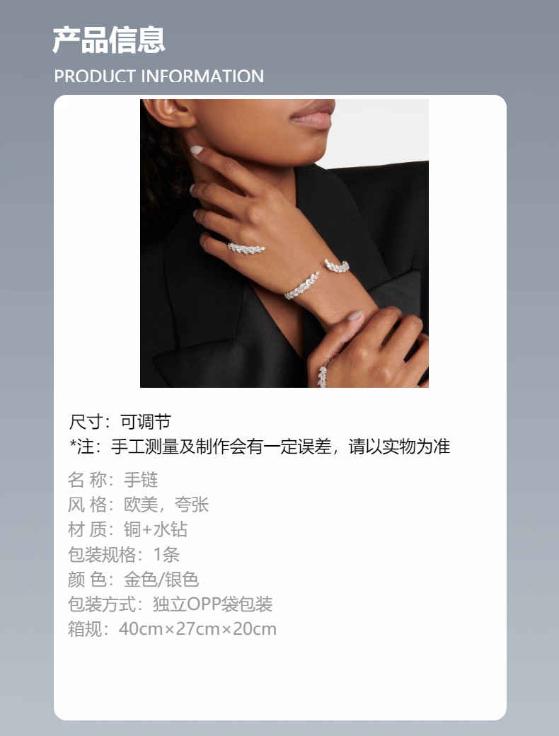 Amazon venta caliente hoja abierta brazalete personalidad zircon brazalete ajustable temperamento accesorios Brazalete mujer