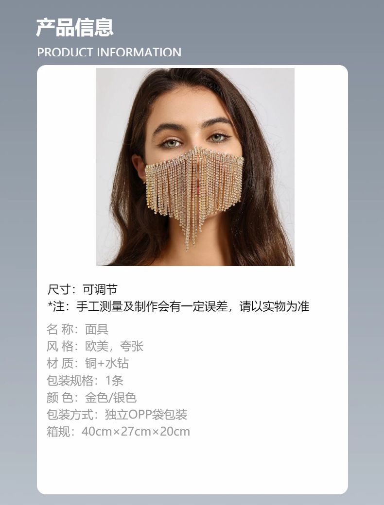Amazon nueva máscara de bordas exagerada diamante largo velo de fiesta accesorios versátiles máscara de mujer