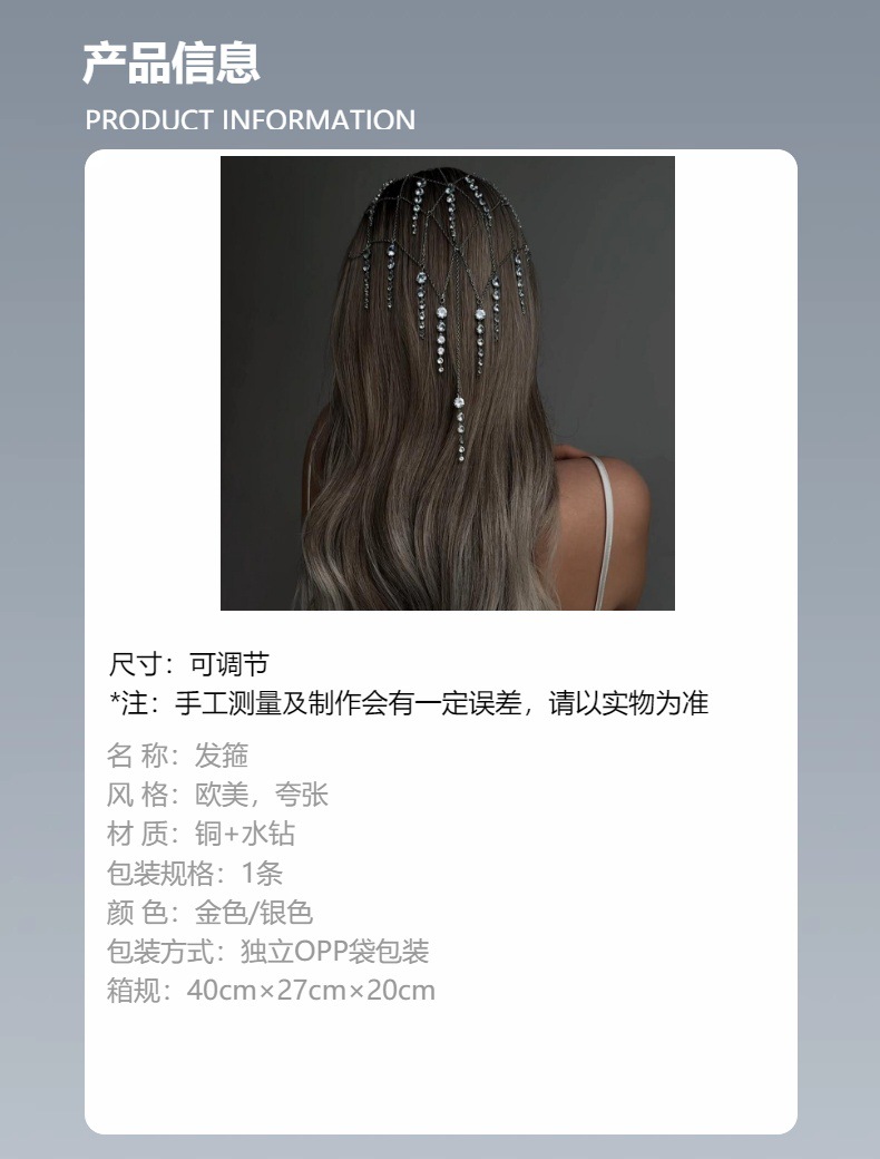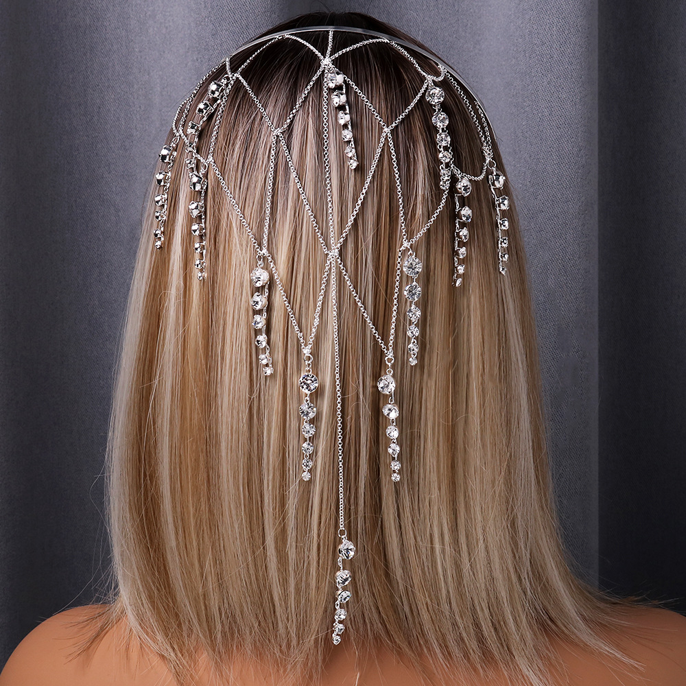 Europa y los Estados Unidos de la nueva red de bordas de cabello temperamento de diamante cadena de cabello de novia joyería universal banda de cabeza