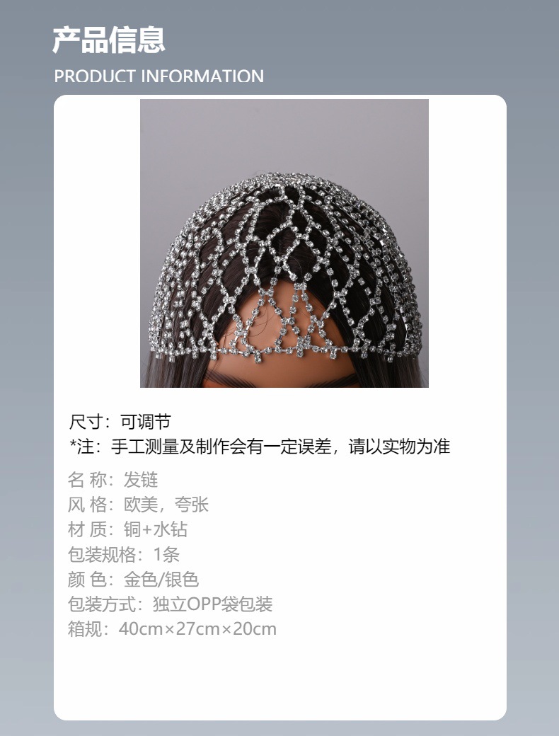 Amazon venta caliente cadena de cabello de malla exagerada joyas de cabello accesorios de escenario mujer cadena de cabello