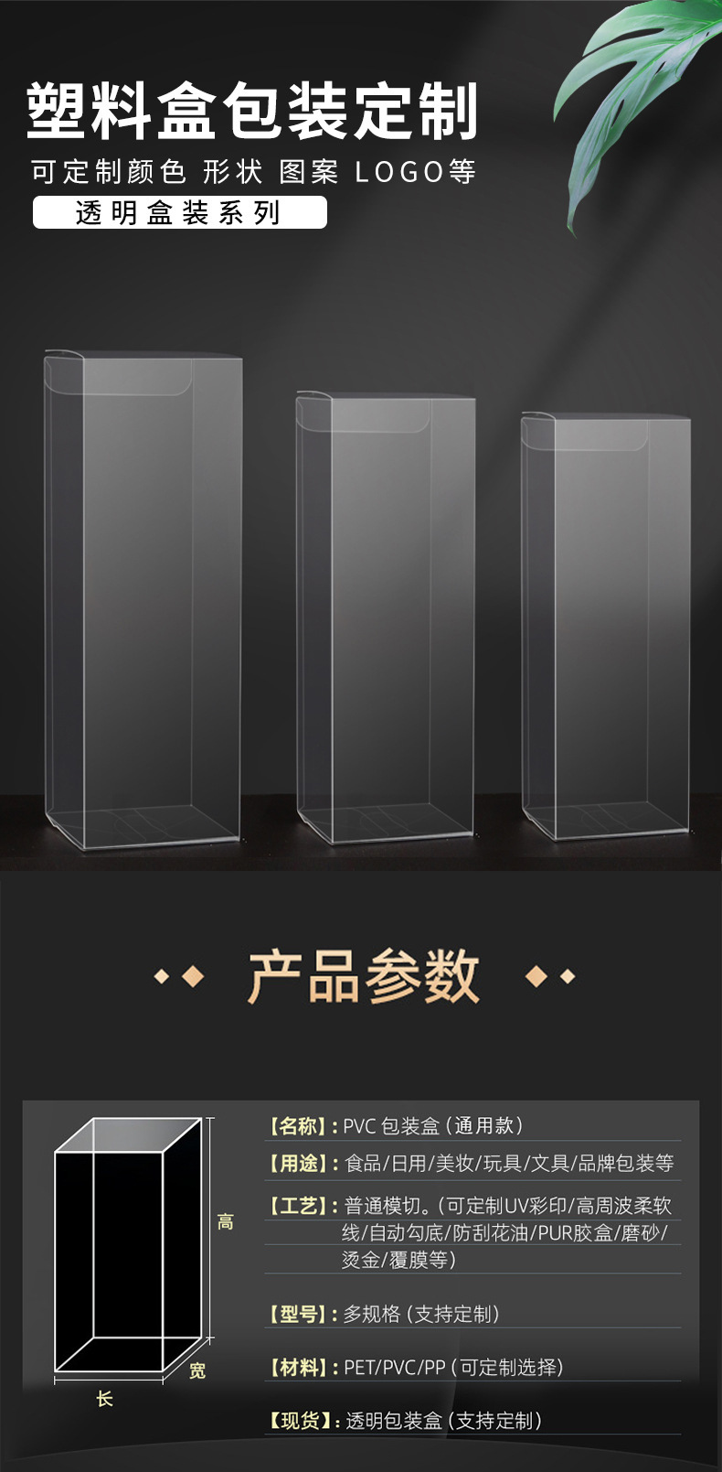 Caja de embalaje de pvc personalizada con orejas colgantes PET protección del medio ambiente caja rectangular de plástico PP caja plegable esmerilada personalizada en pequeños lotes