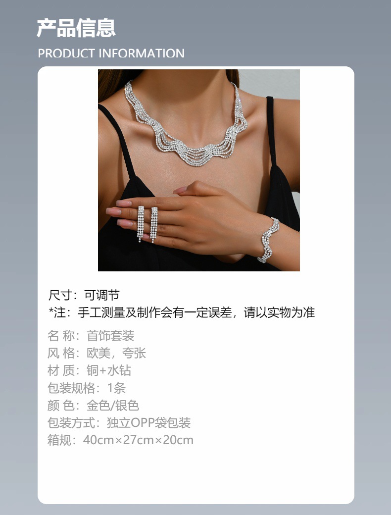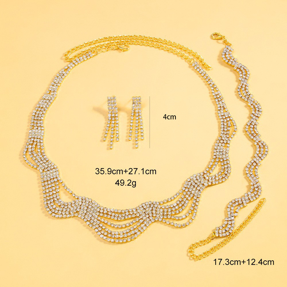 Temperamento europeo y americano ondulado conjunto de joyas de diamante cadena de clavícula pendientes de bordas accesorios de novia conjunto de joyas