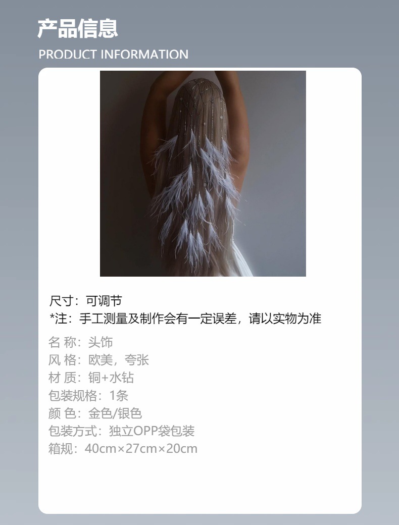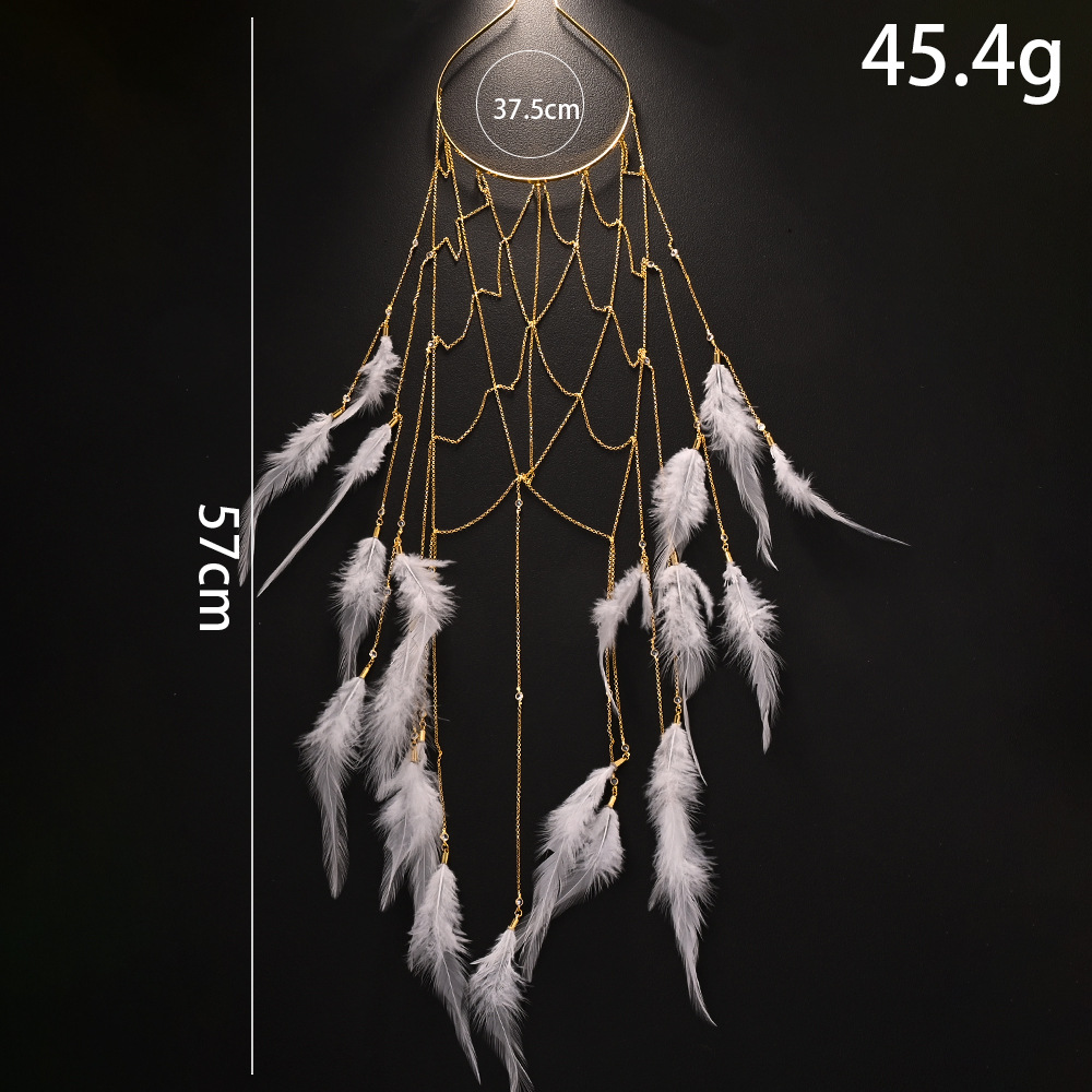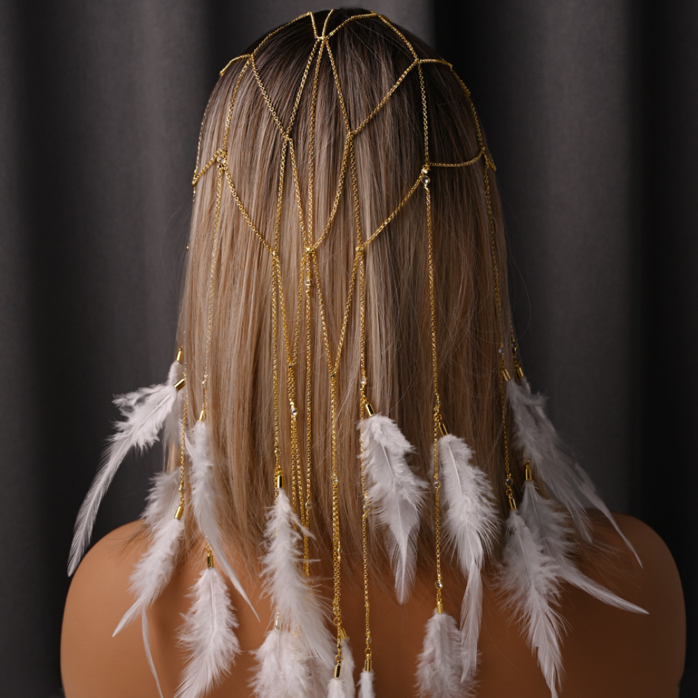 Nuevo colgante de plumas transfronterizas temperamento de hadas cadena de cabello accesorios para la cena banda de cabeza femenina