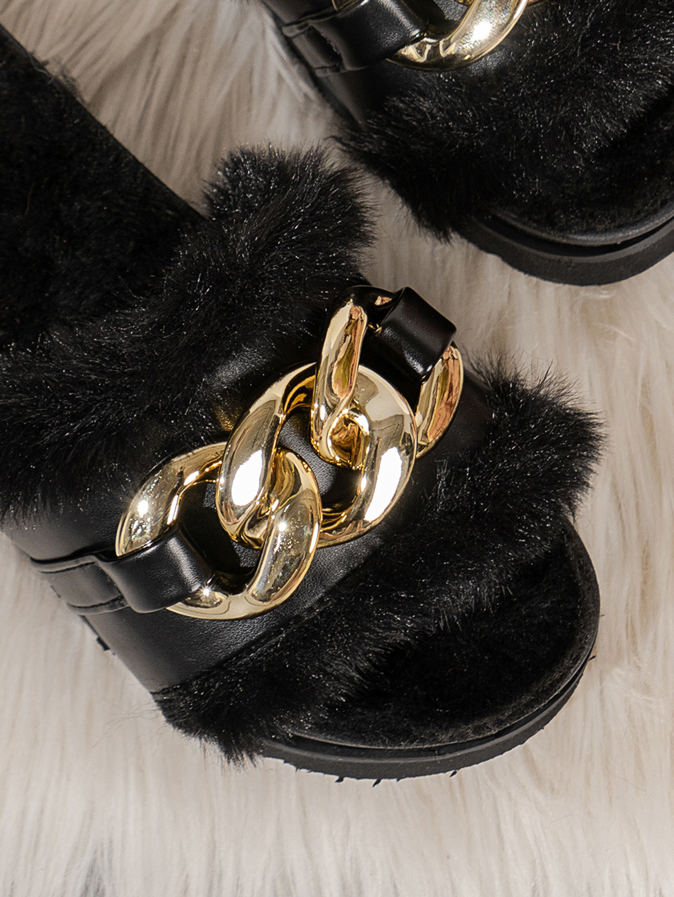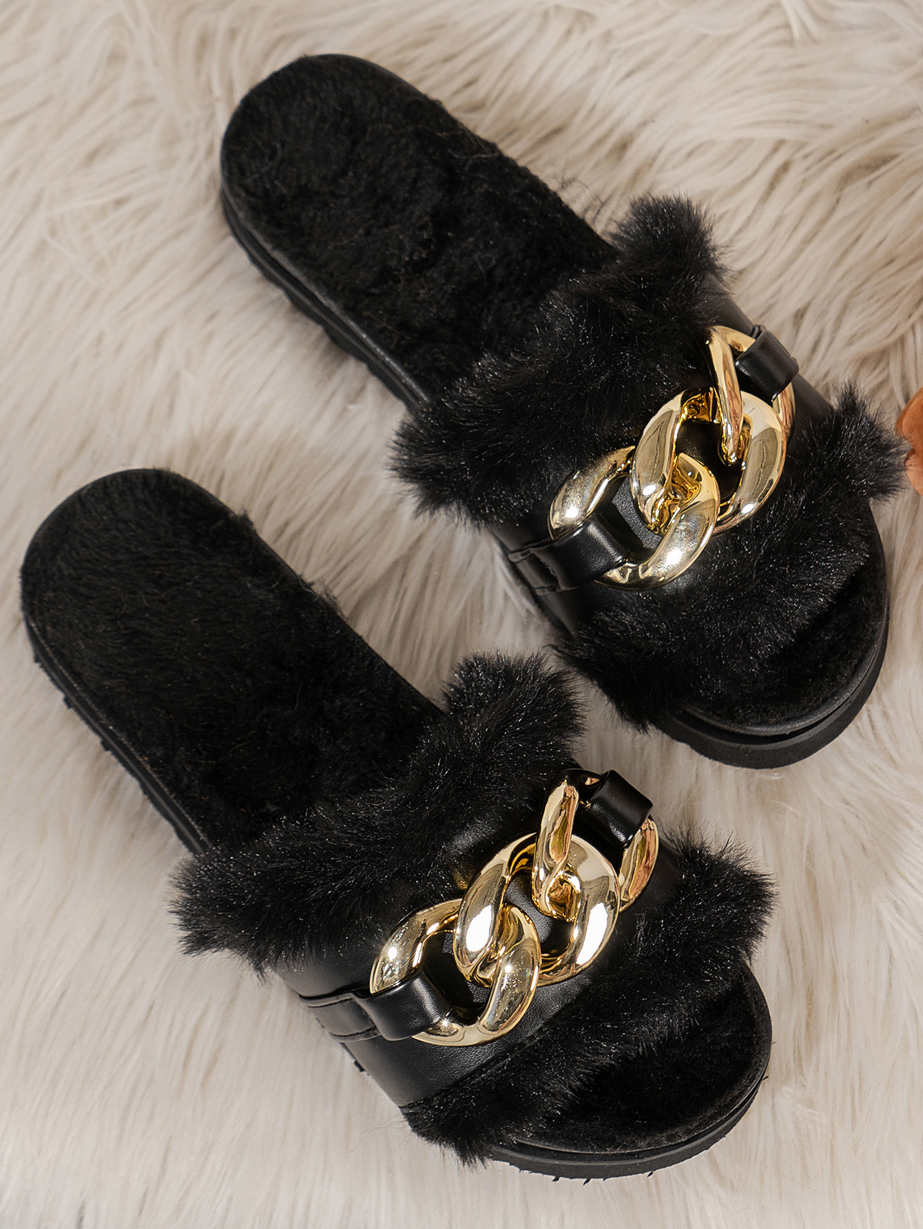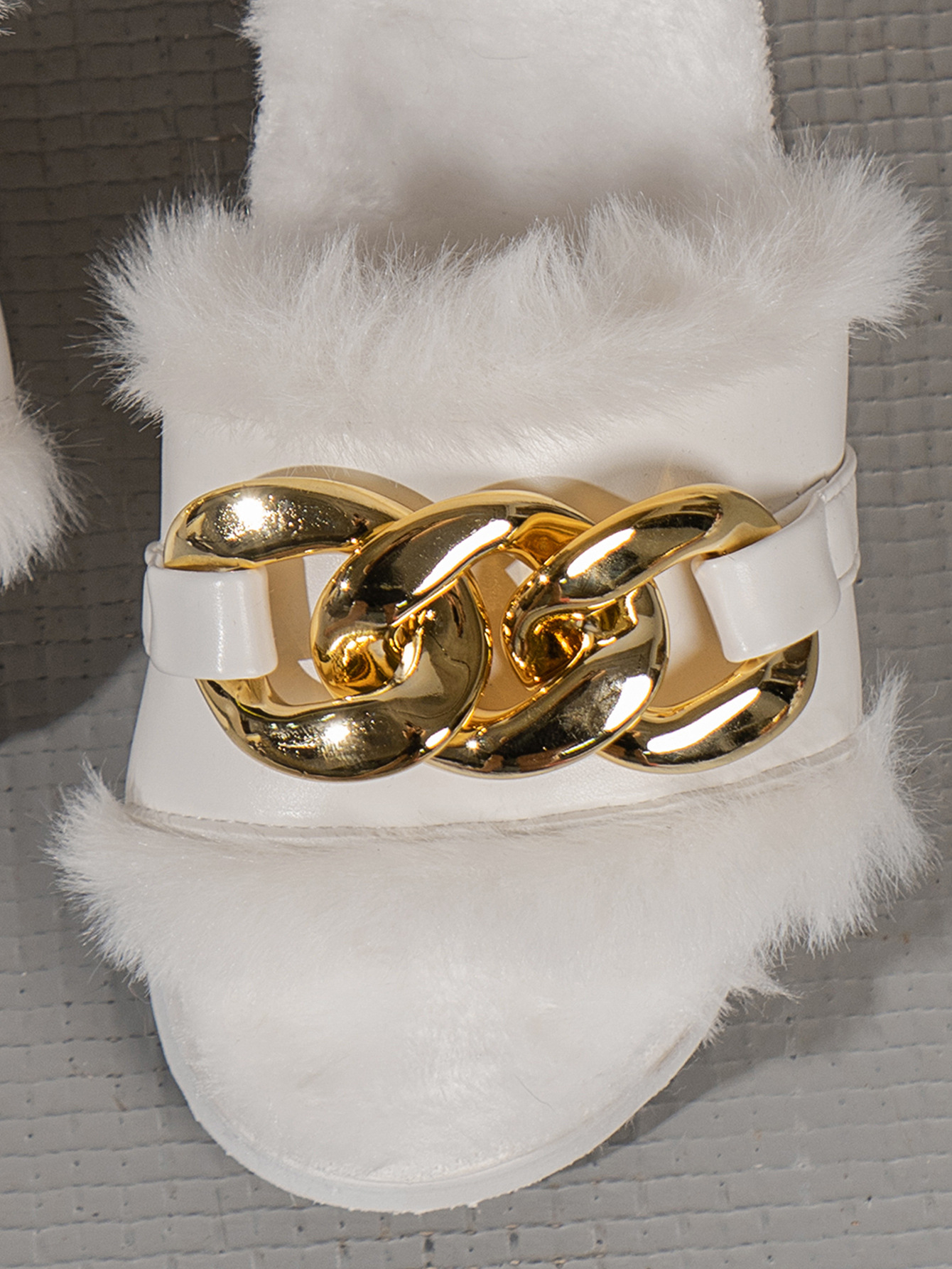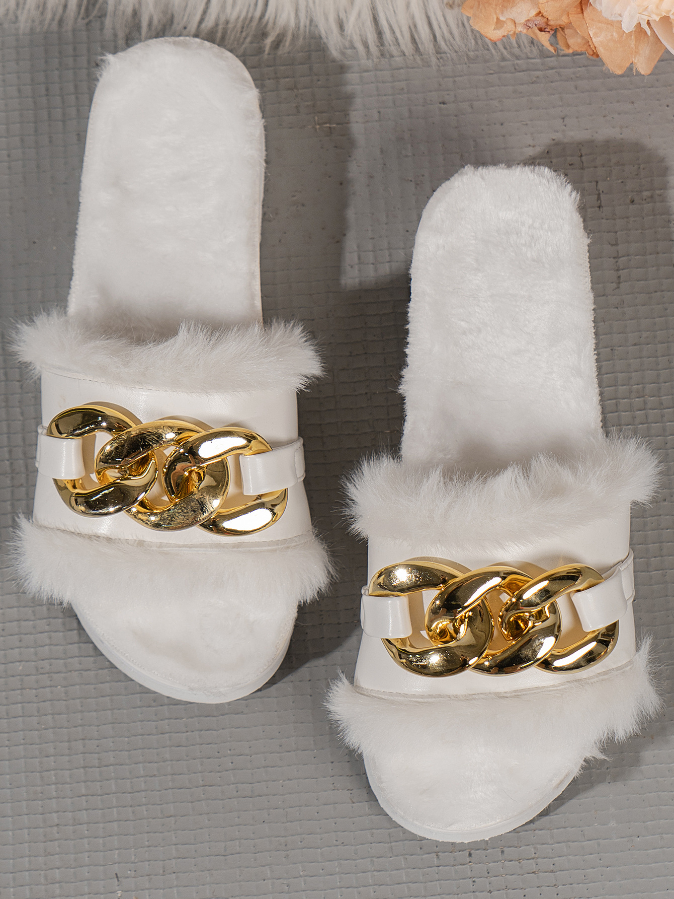 2024 nueva moda abertura zapatillas de lana zapatillas de cadena metálica zapatillas de algodón para mujeres ocio interior calentamiento zapatillas