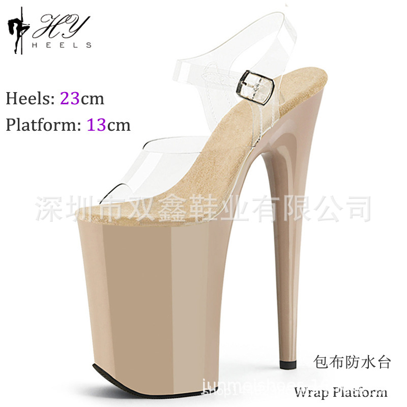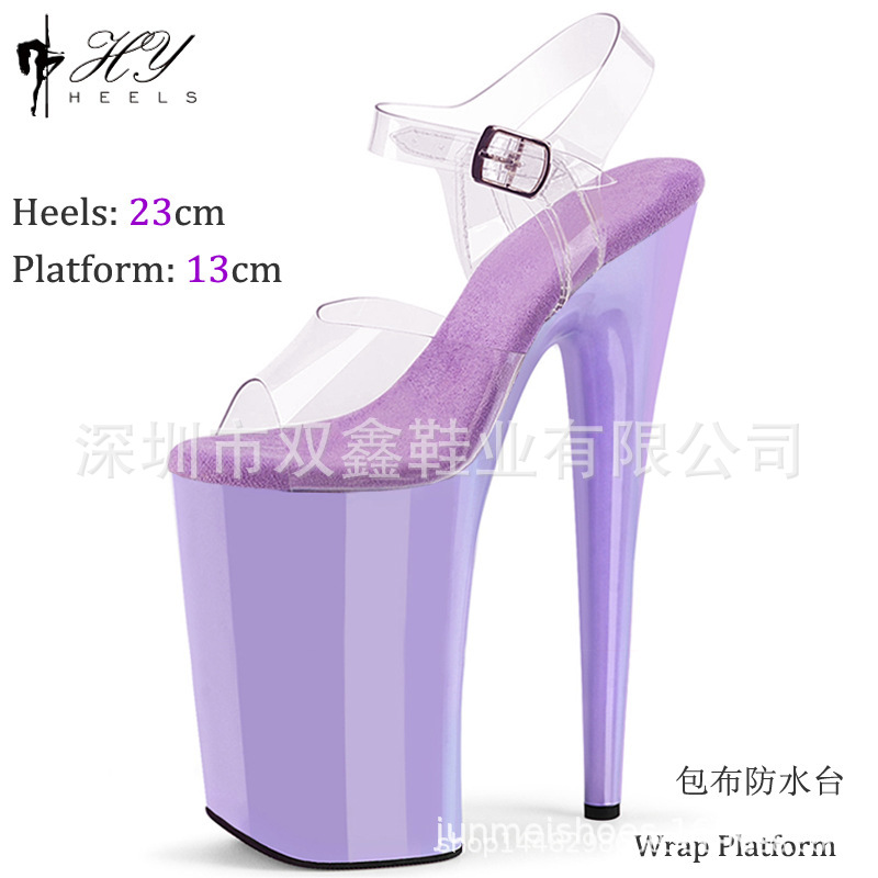 23cm moda europea y americana sexy odio tiangao pole danza zapatos nuevo modelo característico entrenamiento pasarela Sandalias de tacón alto para las mujeres