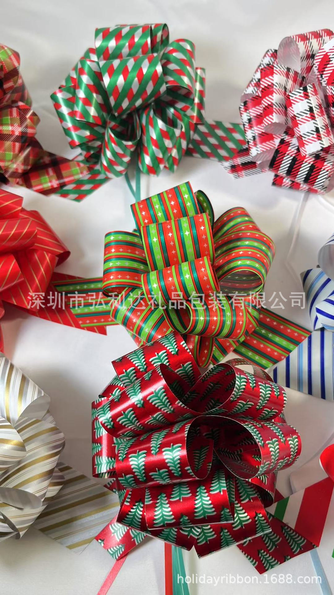 Inventario 12 conjuntos de 5 "decoración de Navidad flor de mano Navidad ciervo patrón impresa cinta de color PP flor de mano