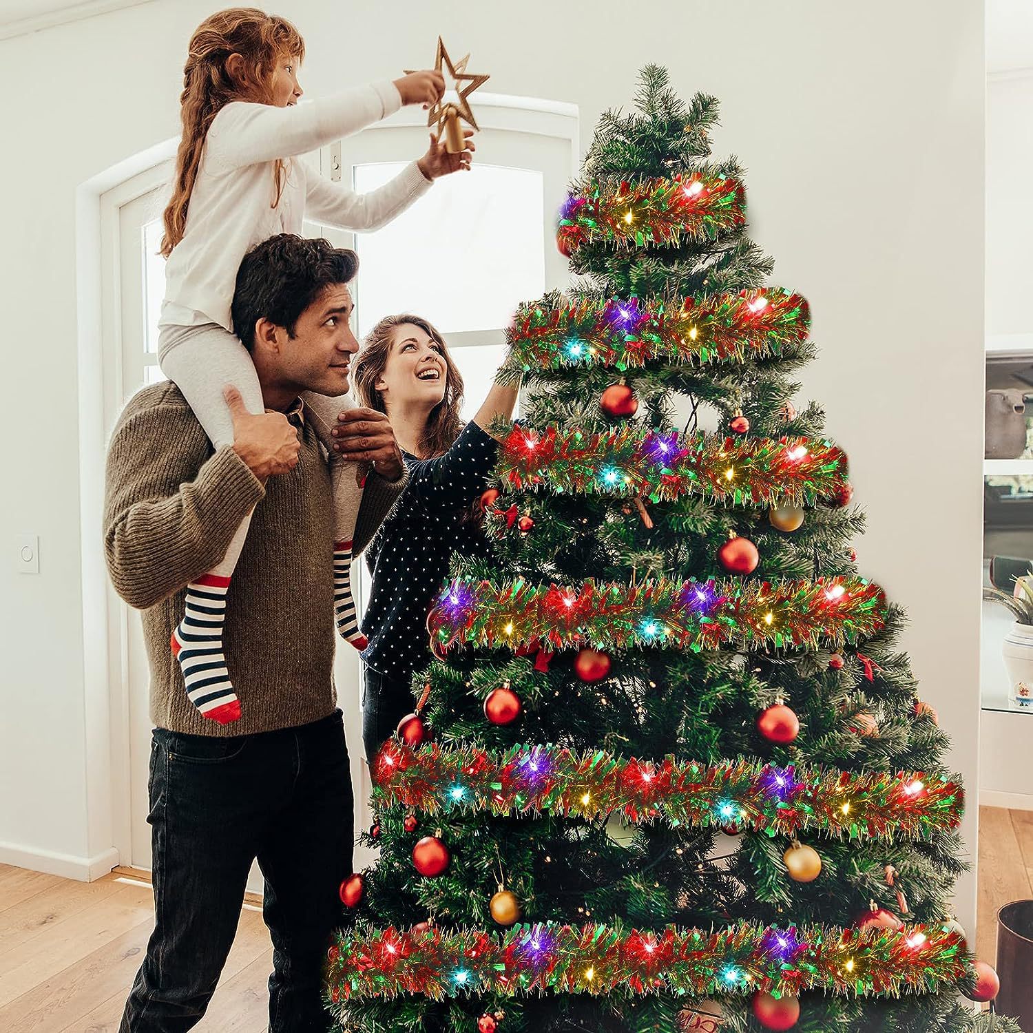 | Color | Tiras de oro rojas, verdes y navideñas |