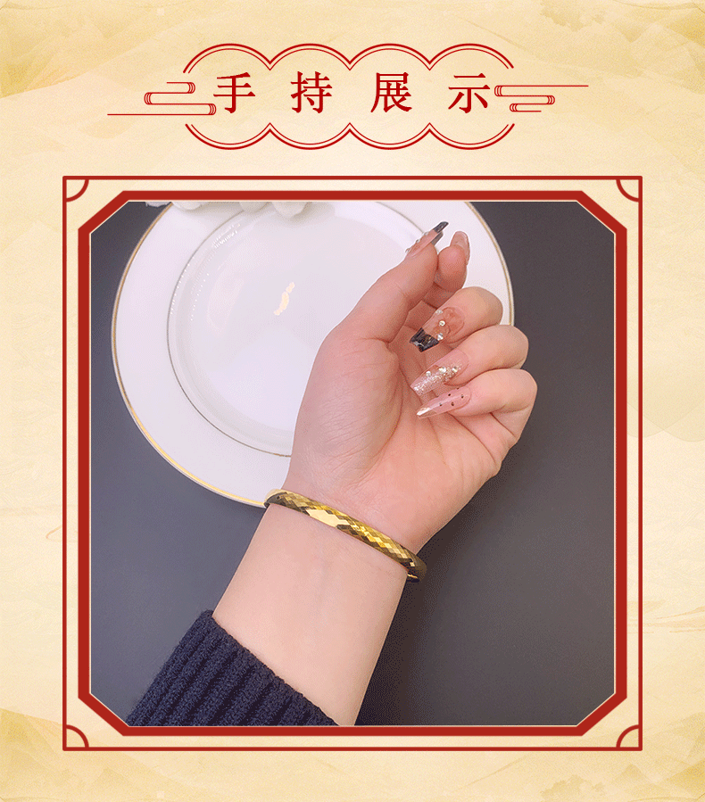 Brazalete de oro francés de Vietnam, brazalete de boca cerrada en forma de diamante láser brillante, joyería de lujo ligera femenina durante mucho tiempo