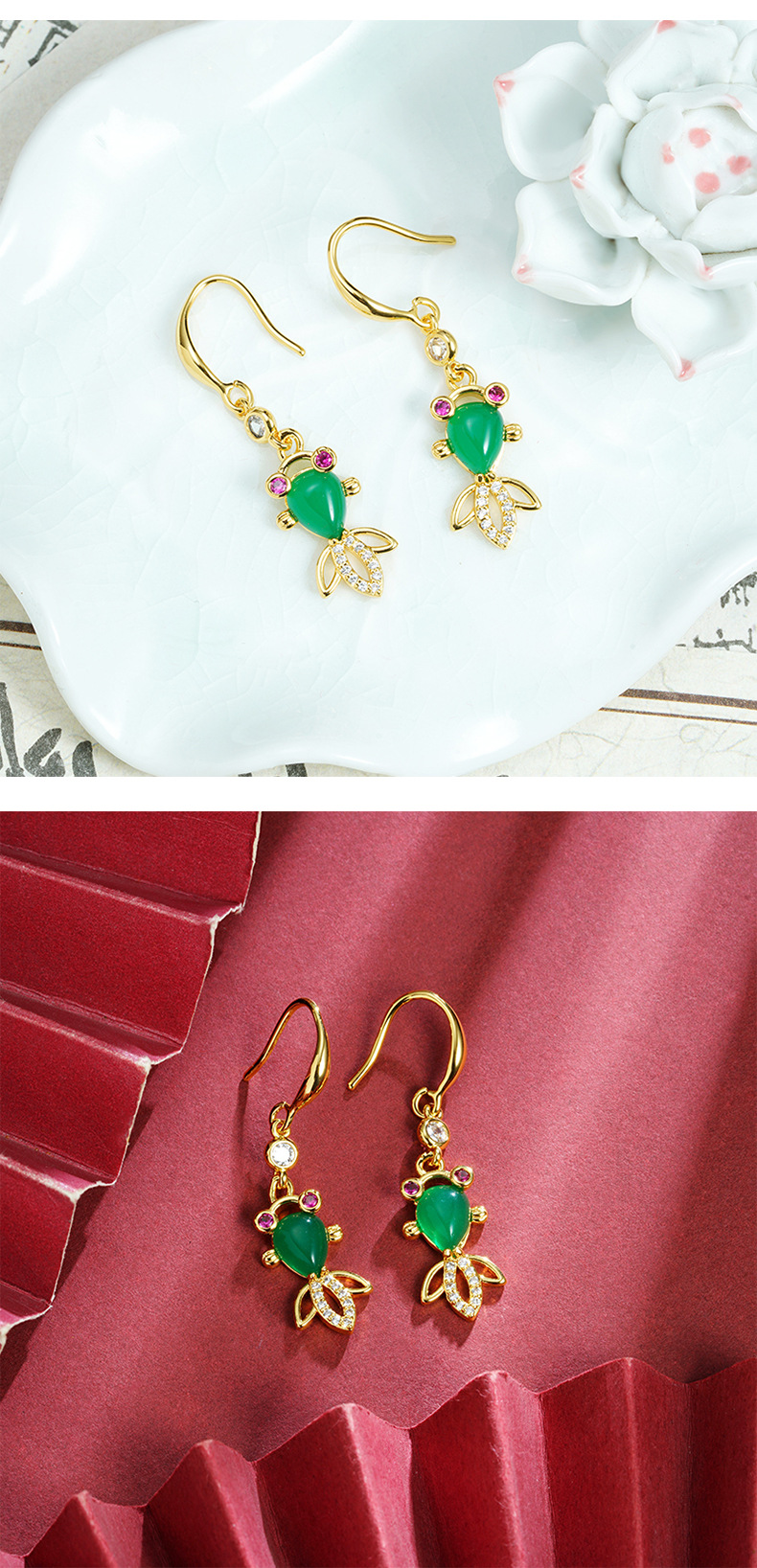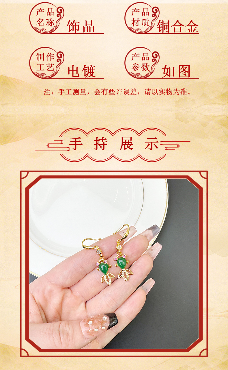 Tendencia nacional Vietnam arena oro pendientes retro con incrustaciones de circón calcedonia gancho de oreja temperamento femenino todo fósforo joyería de alta calidad al por mayor