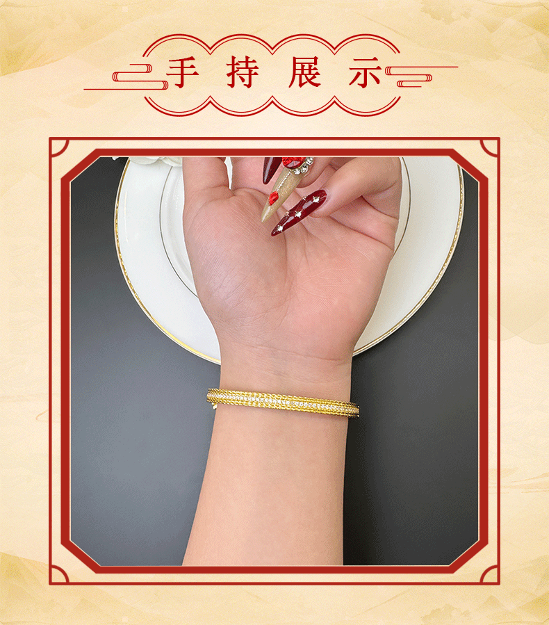 Pulsera de oro de arena vietnamita estilo de palacio con microincrustaciones de circón, pulsera geométrica cuadrada, temperamento, joyería de mano de alta calidad al por mayor