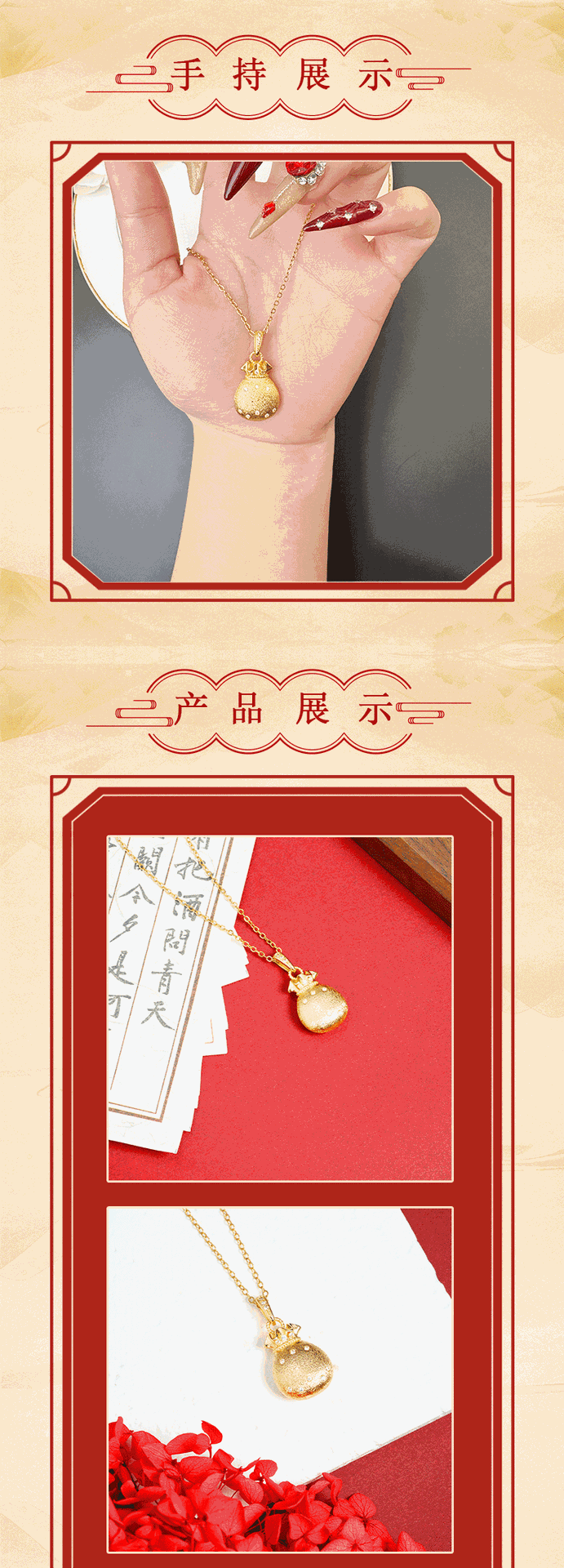Nuevo colgante de oro de arena vietnamita de estilo chino estilo palacio bolso de bendición de diamantes de lujo ligero colgante retro durante mucho tiempo sin desvanecimiento fuente de joyería