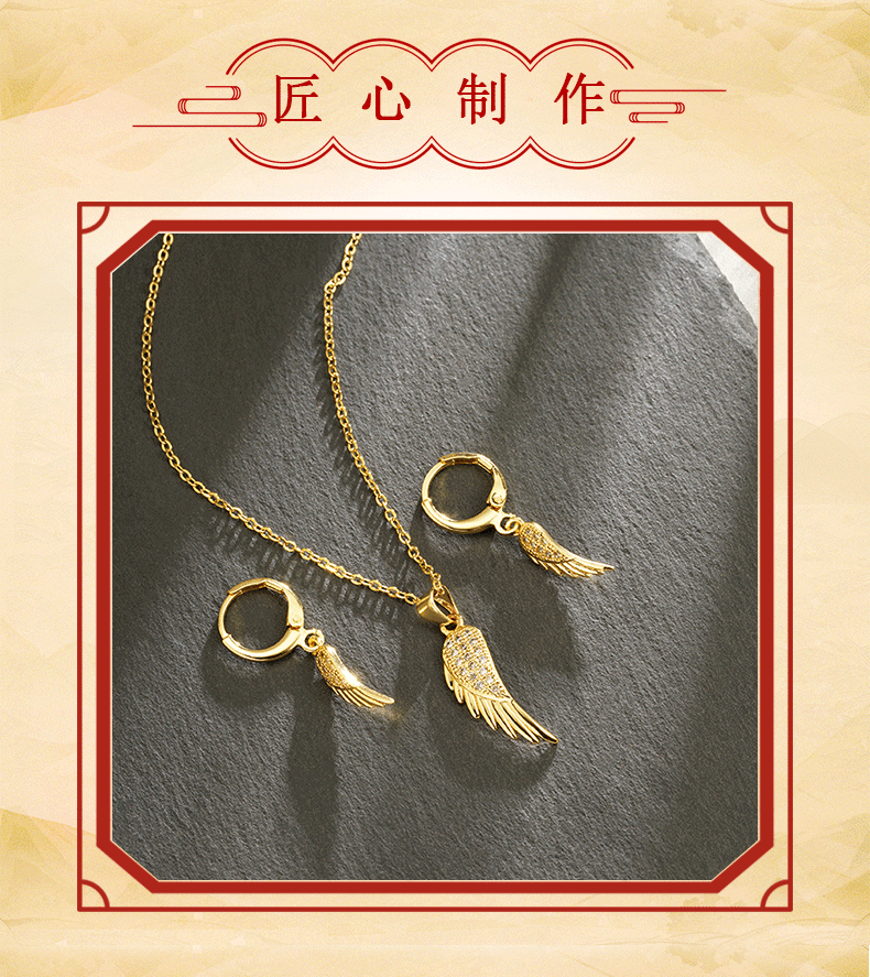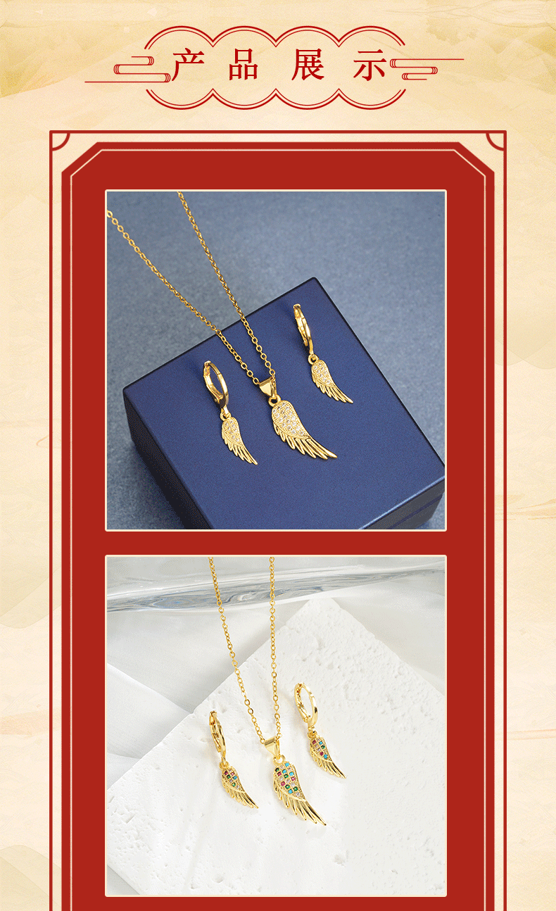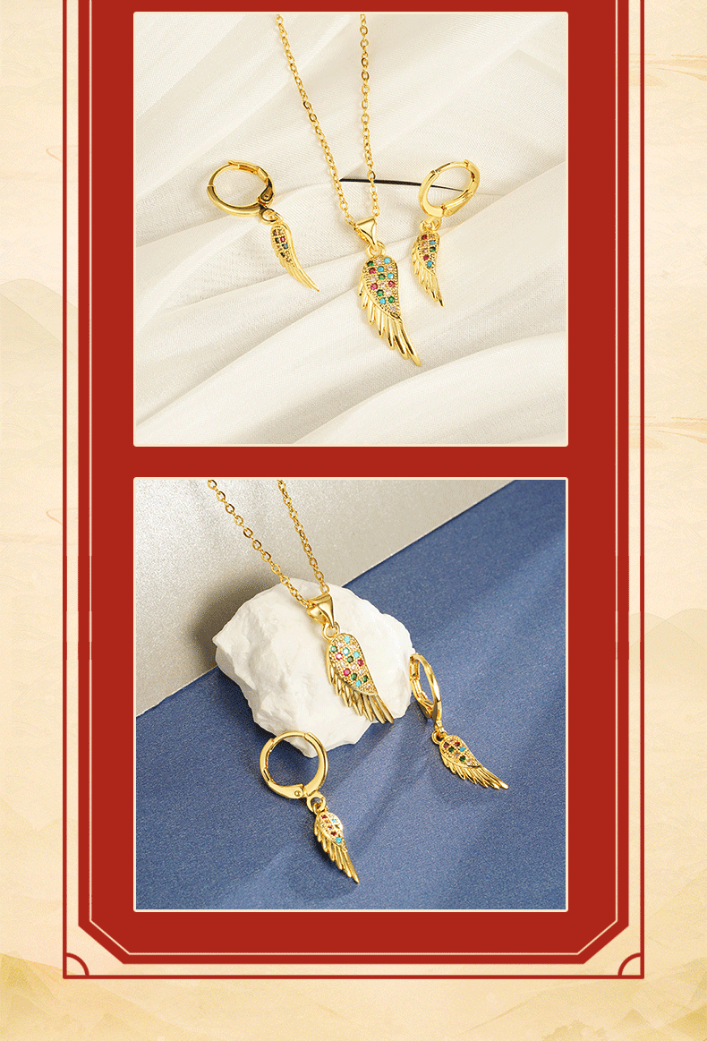 Collar de oro de arena vietnamita transfronterizo, estilo de lujo ligero, aretes de alas de ángel, temperamento femenino, joyería al por mayor