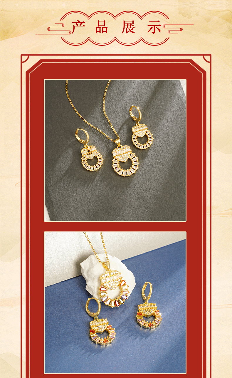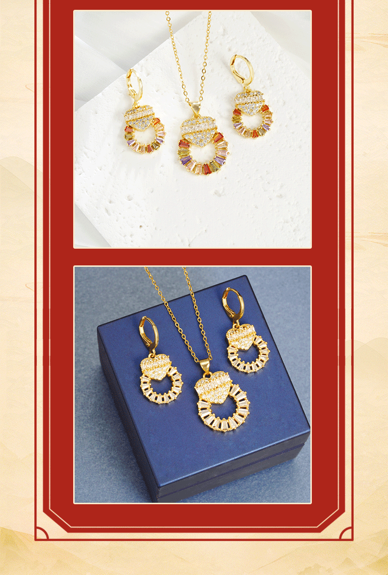 Nuevo collar de oro de arena transfronterizo, estilo de lujo ligero, pendientes de anillo en forma de corazón de diamantes, temperamento femenino, joyería al por mayor