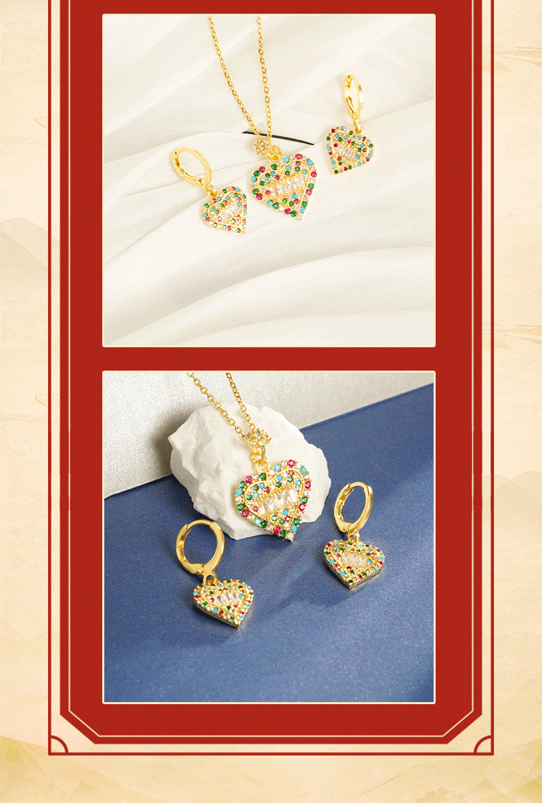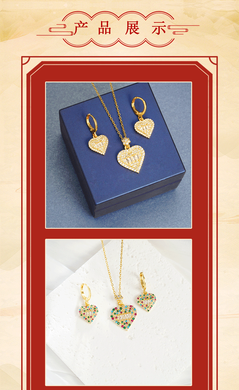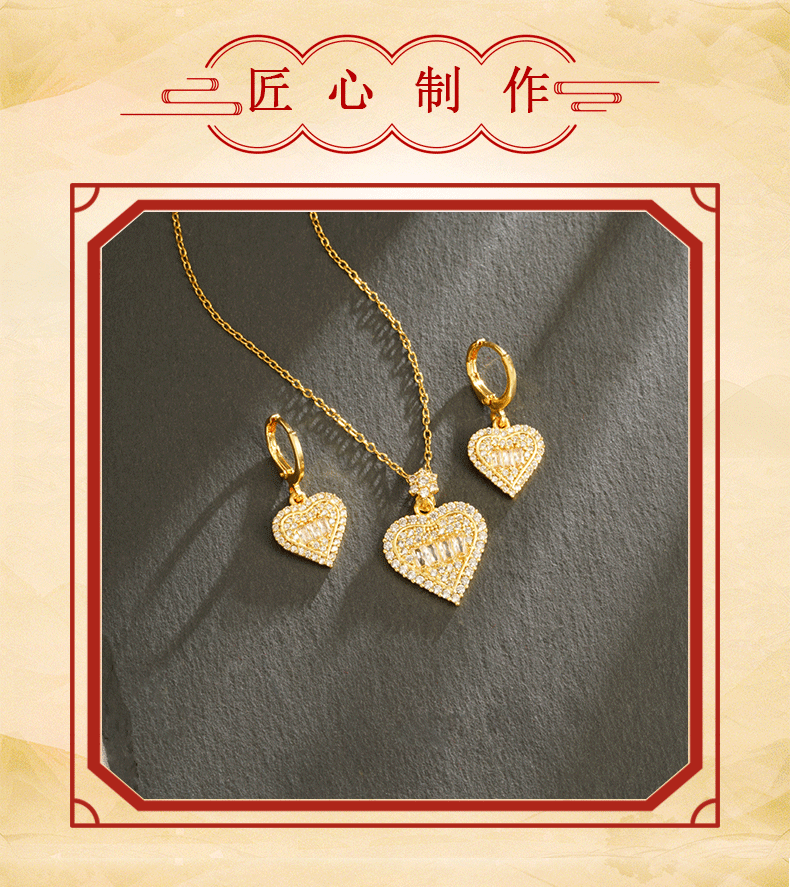 Collar de oro de arena vietnamita transfronterizo Pendientes de corazón de diamantes de lujo ligero Conjunto de joyería de alta calidad para mujer que no se desvanece durante mucho tiempo al por mayor