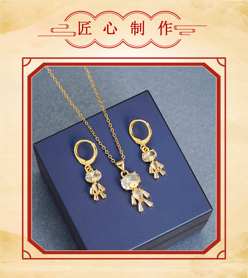 Collar de oro de arena vietnamita transfronterizo Pendientes de oso con diamantes de estilo de lujo ligero
