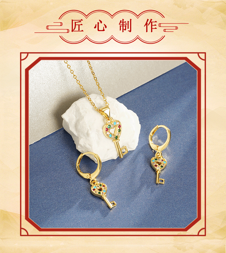 Collar de oro de arena vietnamita transfronterizo, juego de pendientes con llave de amor de diamantes de lujo ligero, joyería de cobre chapada en oro para mujer