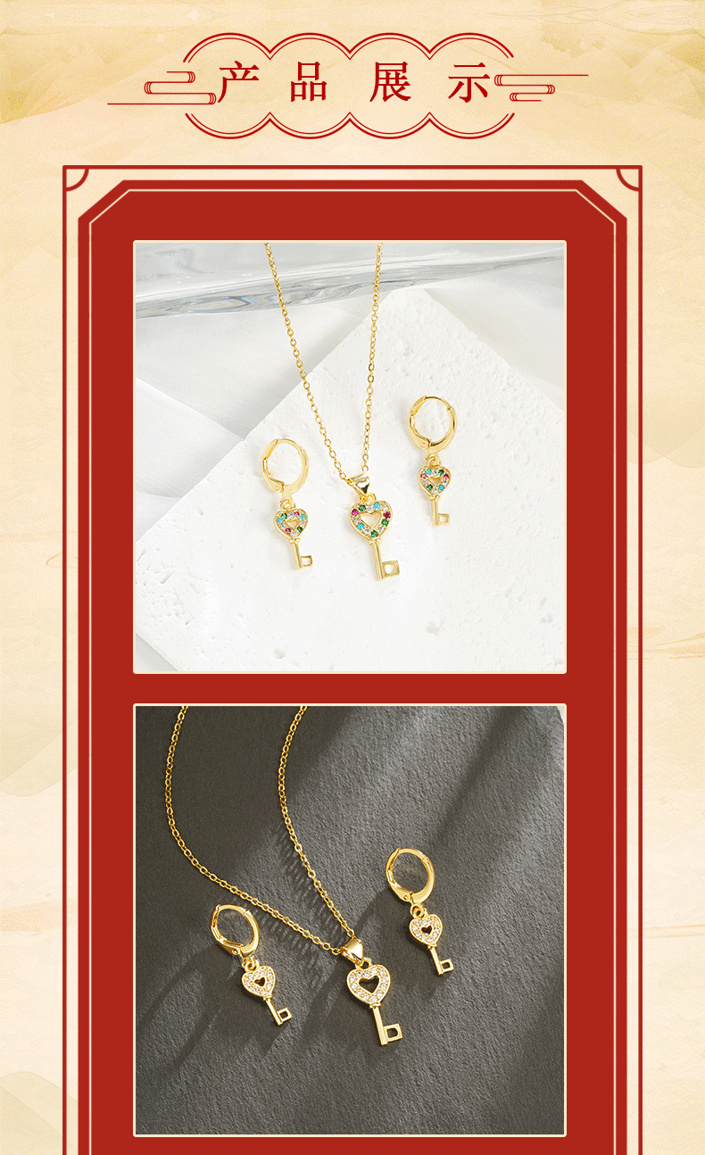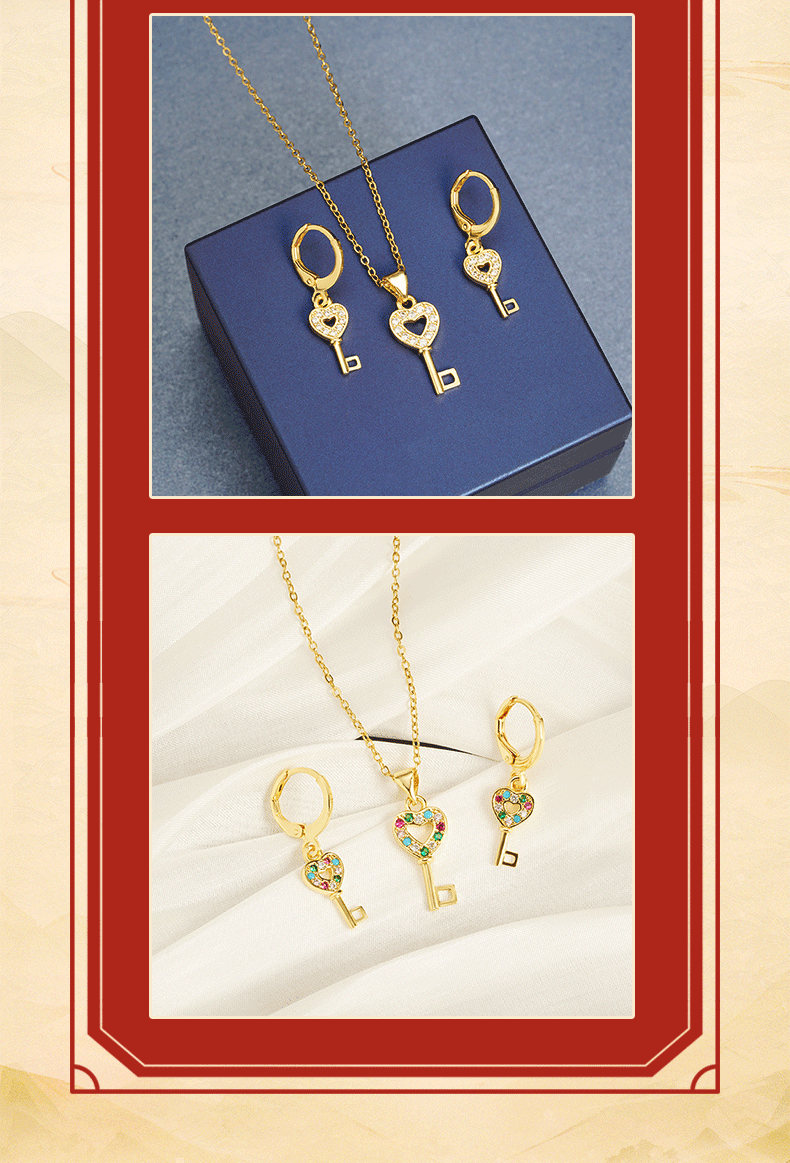 | Colores | X3130 Collar con llave de amor-Diamante blanco,X3131 Love Key Collar-Color Diamond,E2836 Pendientes con llave de amor-Diamante blanco,E2837 Love Key Pendientes-Diamantes de colores |