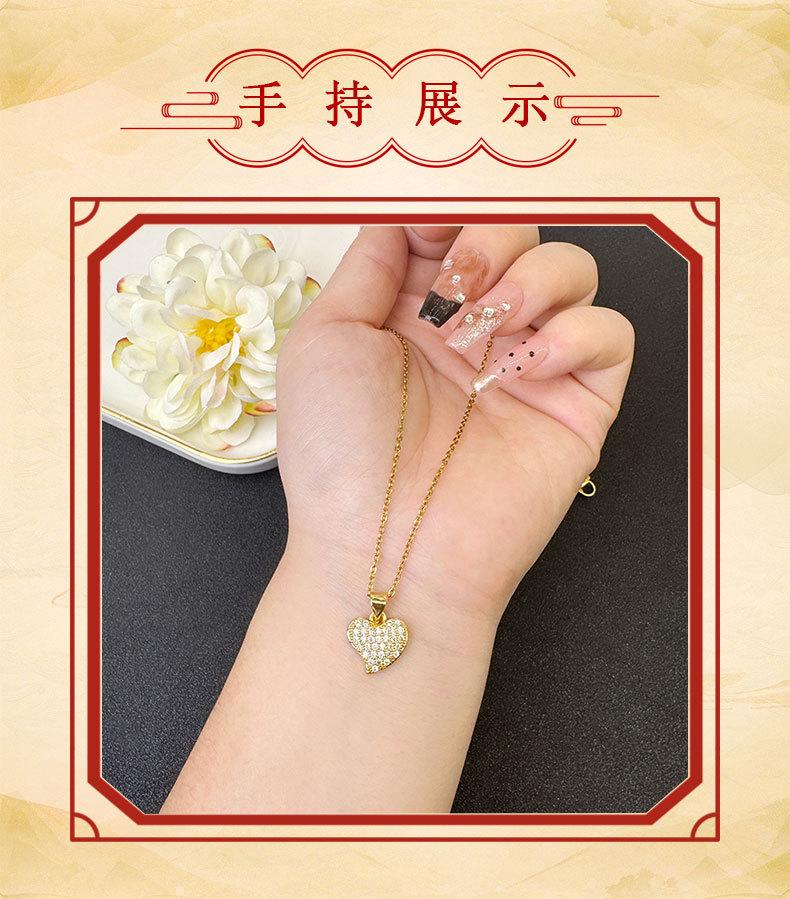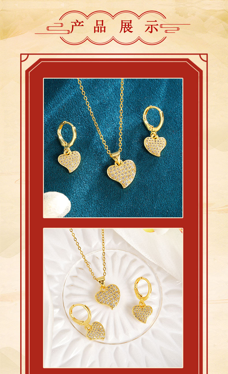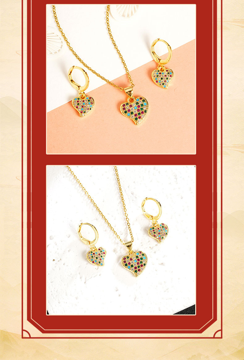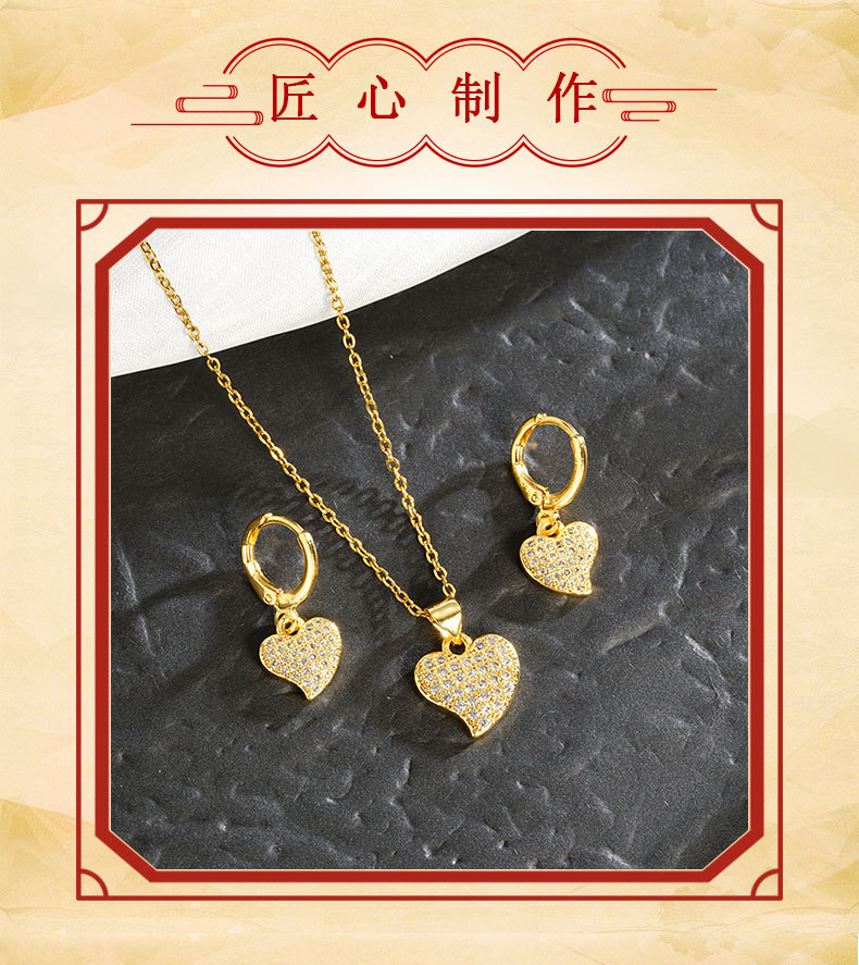 Collar de oro de arena vietnamita, cadena de clavícula de circón de color con incrustaciones, pendientes geométricos en forma de corazón, joyería transfronteriza europea y americana femenina de moda