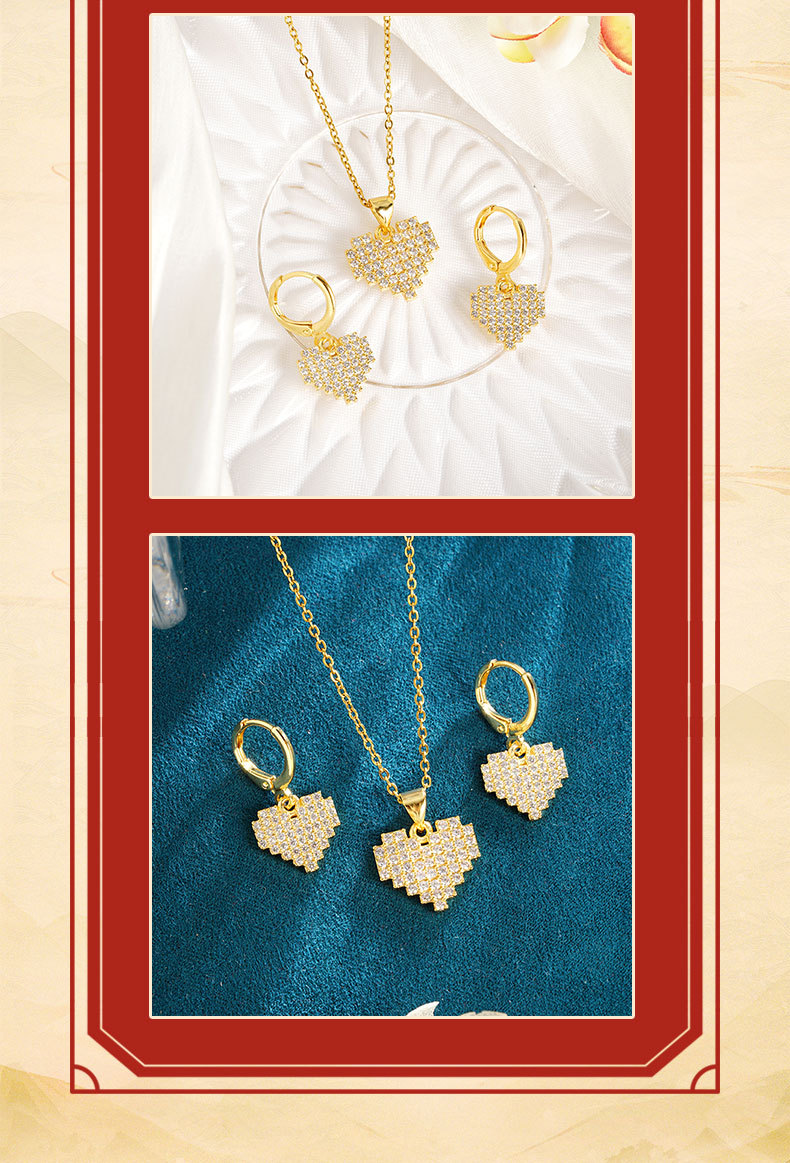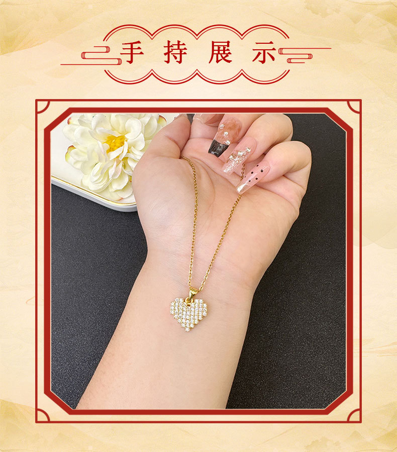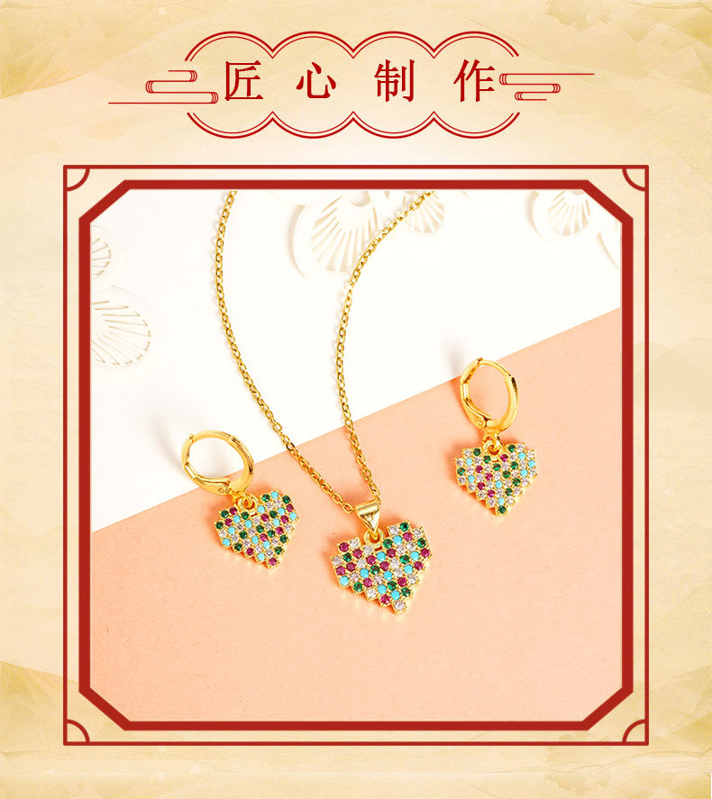 Vietnam Shajin Xiaozhong Collar de amor de diamantes de todo fósforo que no se desvanece durante mucho tiempo Pendientes de lujo ligeros de alta gama para mujer Suministro de accesorios