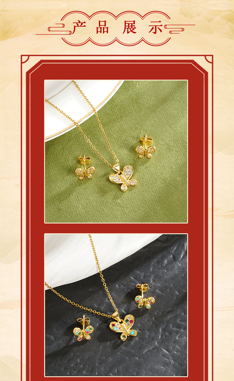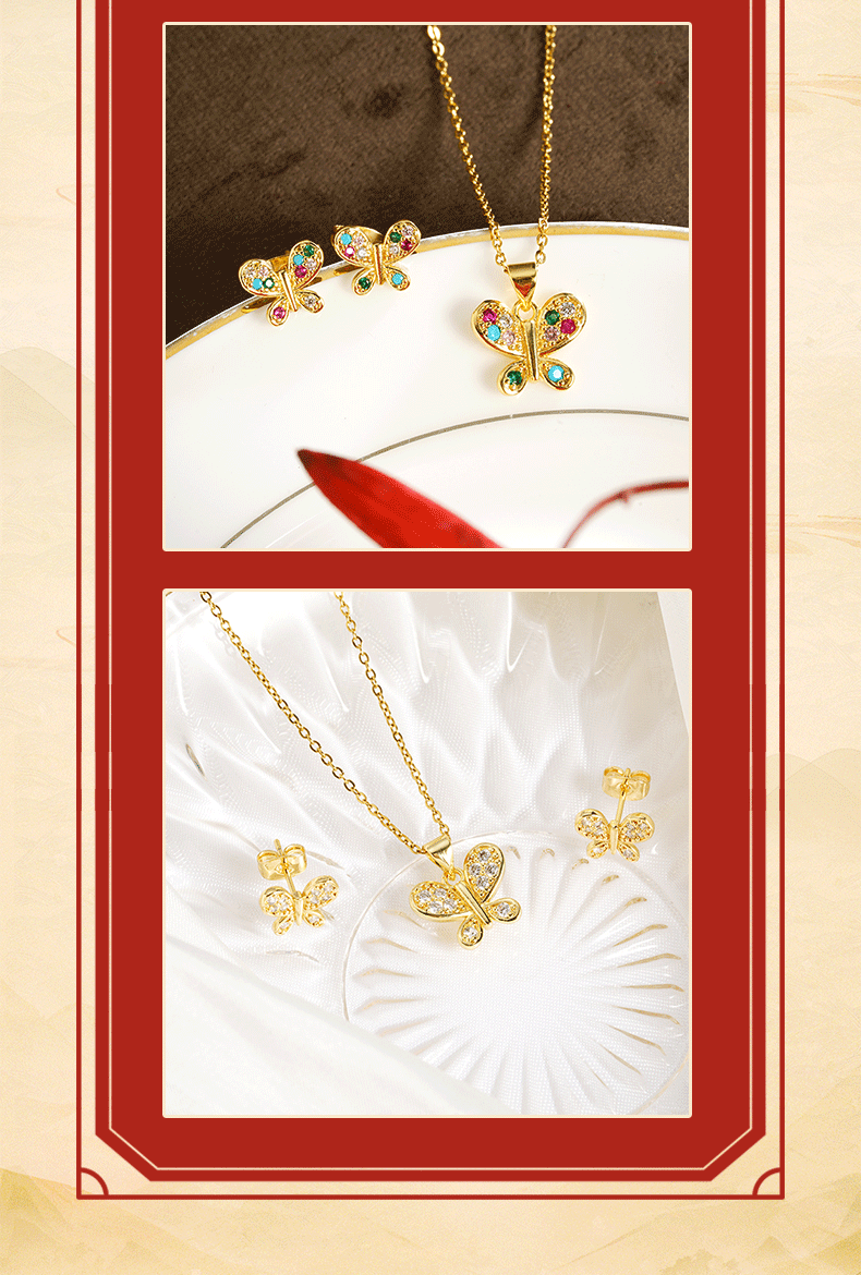 Vietnam Shajin nuevo estilo retro luz de lujo con incrustaciones de color collar de mariposa pendientes durante mucho tiempo sin decoloración joyería femenina de alta gama