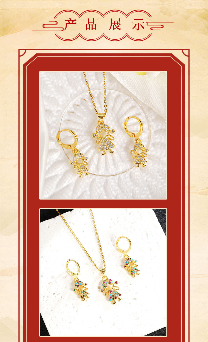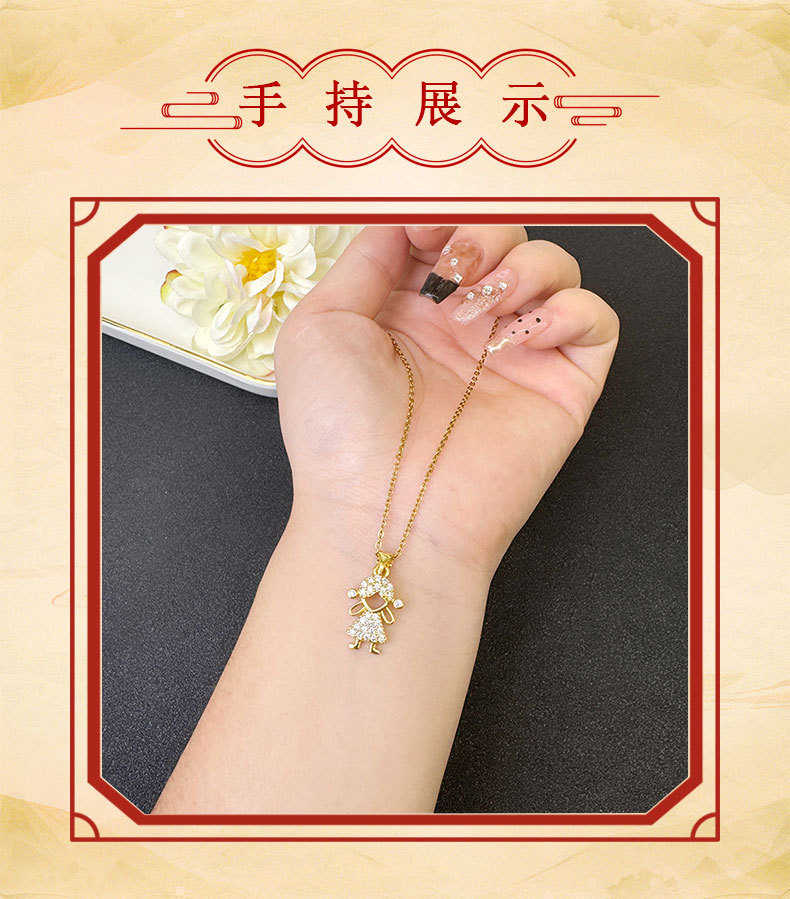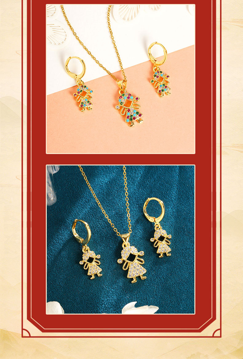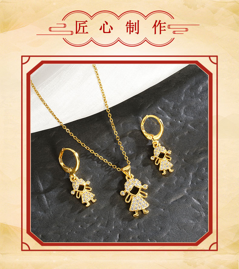 Collar de oro de arena vietnamita, temperamento de moda, diamantes huecos, pendientes de niña feliz, lujo ligero para mujer, joyería de alta gama