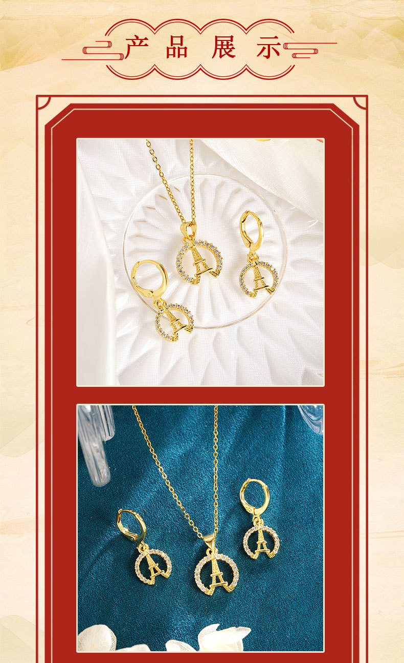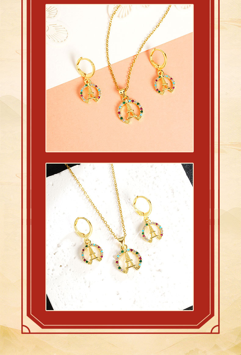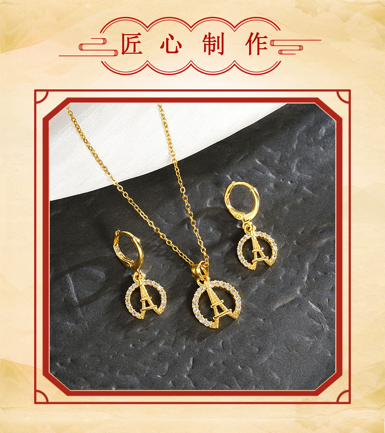 Collar de oro de arena vietnamita Pendientes de torre Eiffel con incrustaciones de circón de todo fósforo