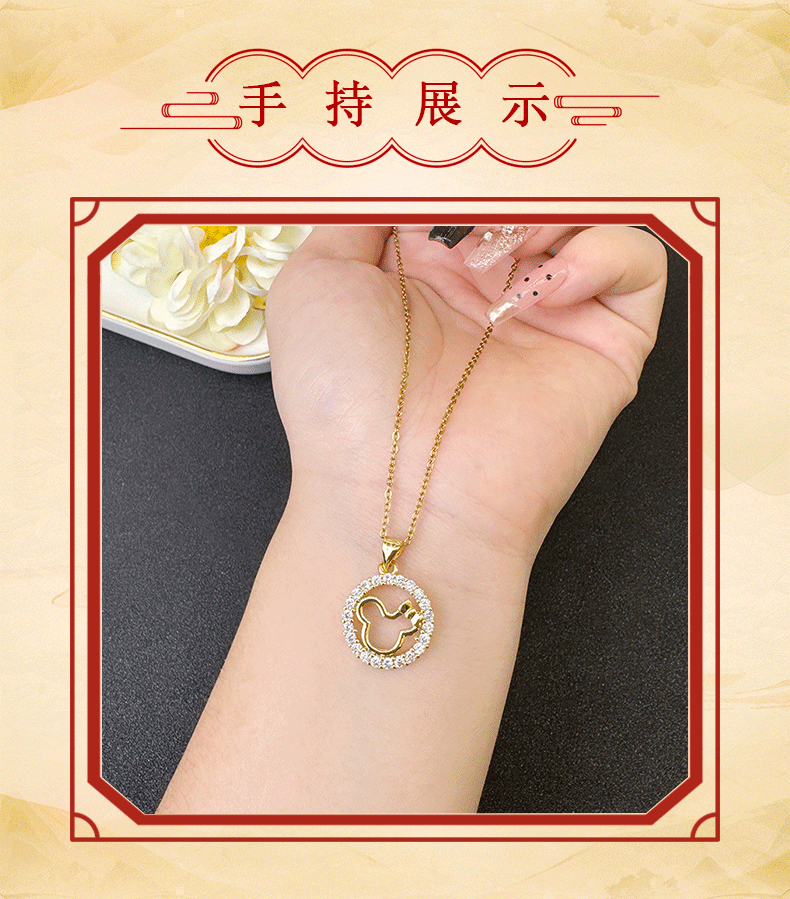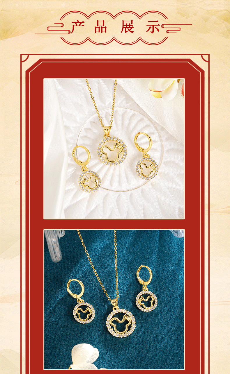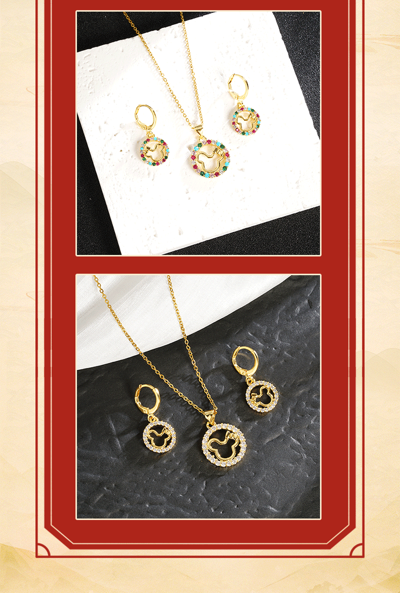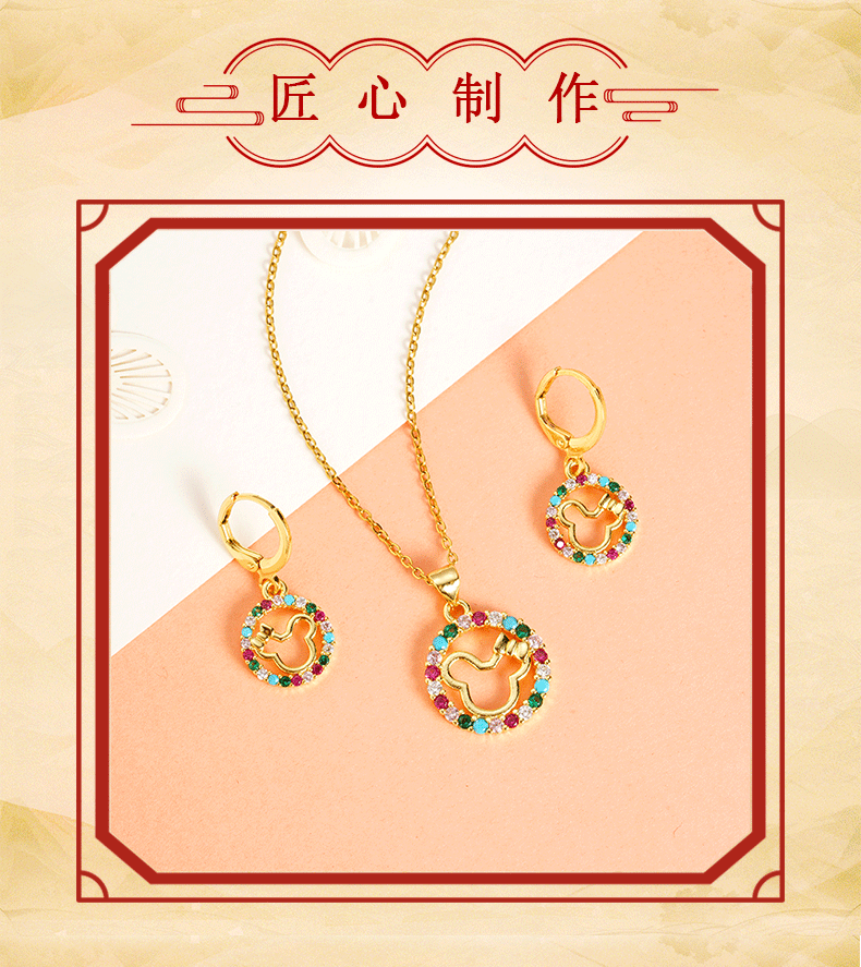 Collar de oro de arena antigua, anillo de diamantes de colores, pendientes de Mickey Mouse, sentido del diseño pequeño, fuente de joyería que no se desvanece durante mucho tiempo
