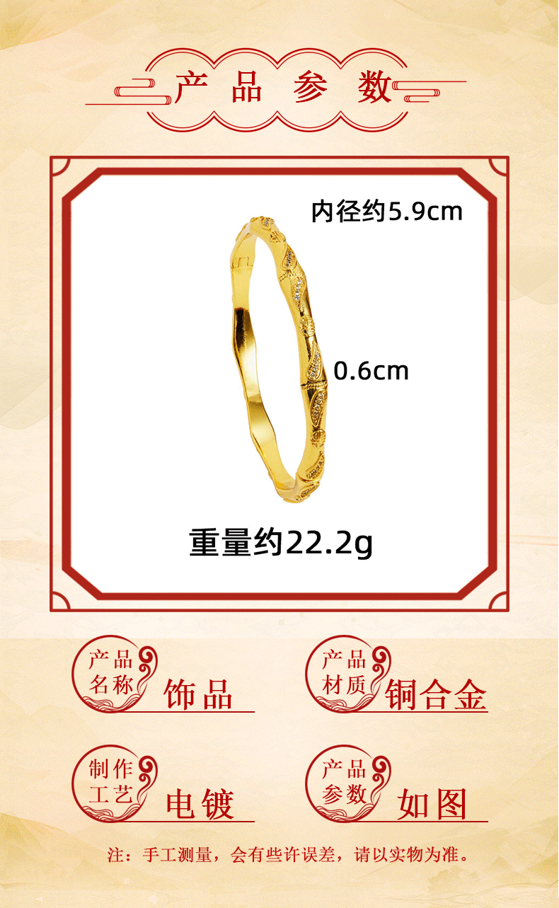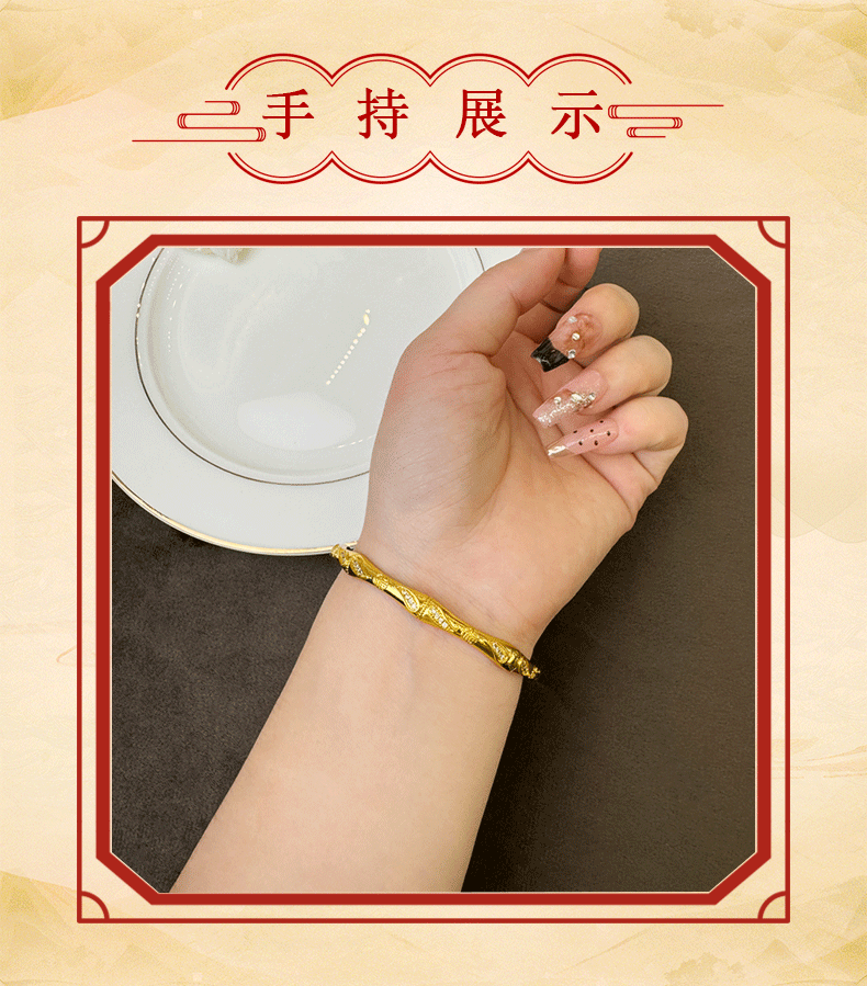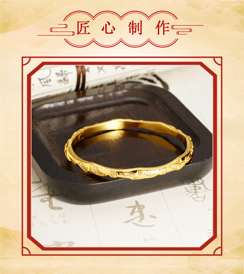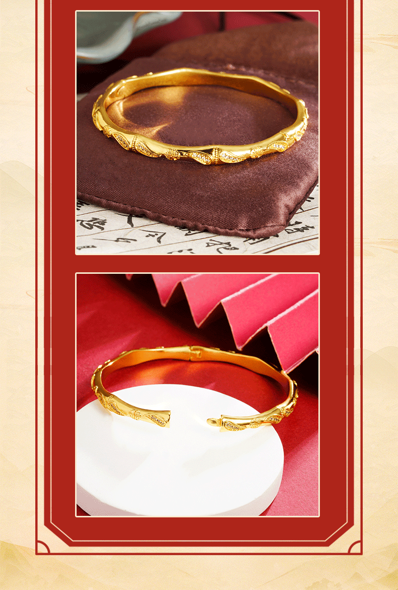 Método antiguo: diseño de lujo ligero de oro de arena vietnamita, brazalete de bambú con incrustaciones, temperamento, joyería de dama que no se desvanece durante mucho tiempo